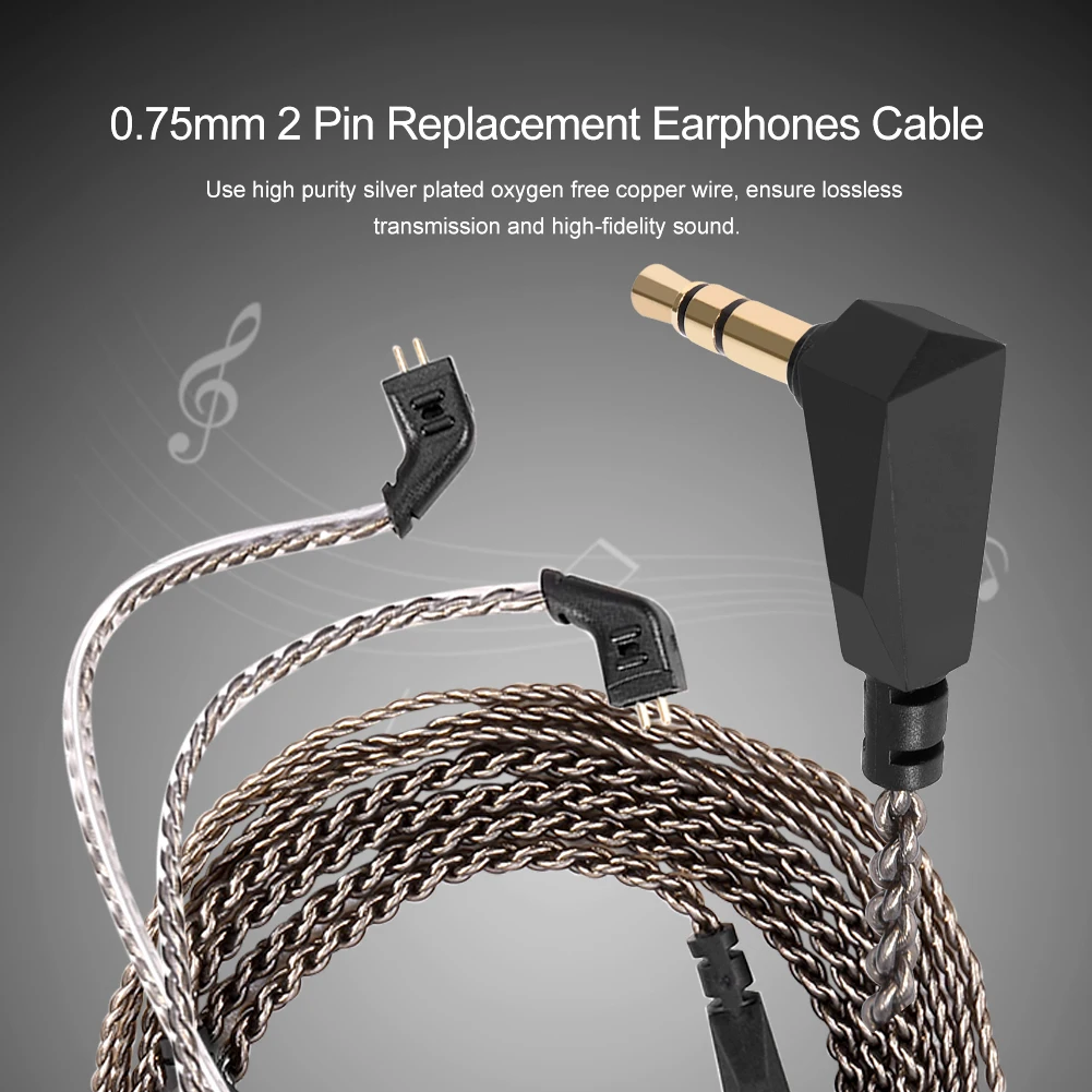 0,75 мм 2 Pin замена наушники кабель для KZ ZST ED12 ES3 СЖД наушники. Используйте высокочистый посеребренный бескислородный медный провод, обеспечивающий передачу без потерь и высокое качество звука. Несколько медных сердечников, плетеных внутри. Качество звука значительно Улучшено. Гибкий кабель для наушников, легко хранить. Работает с большинством мобильных телефонов, планшетов, ноутбуков и других портативных медиа-устройств.