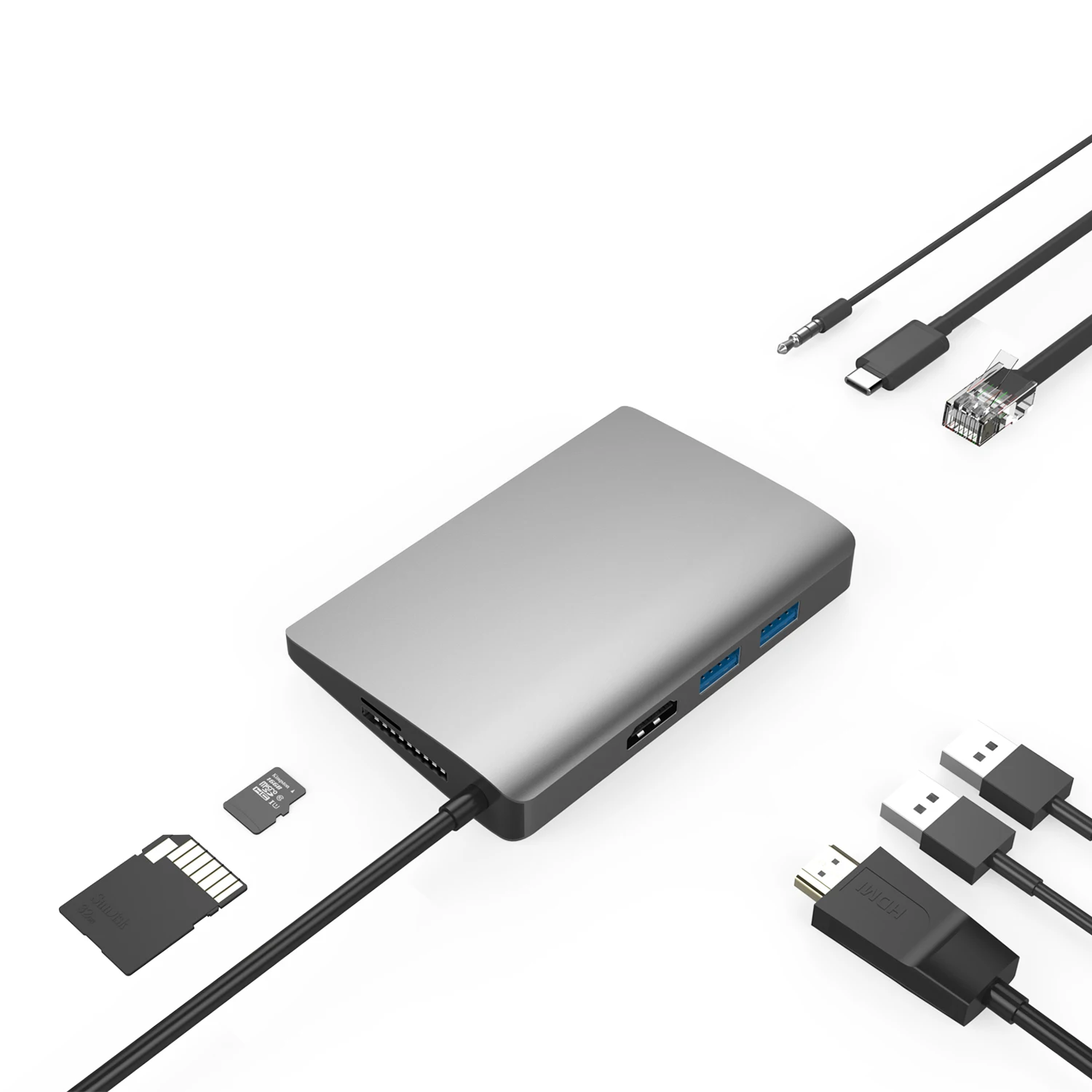 HDMI: видео поддерживает до 4K * 2K / 30 Гц и Поддерживает обратную совместимость USB 3,0: Стандартная передача 5 Гбит/с USB 3,0 поддерживает чтение и запись данных. Выход мощность одного порта-7,5 W (5V / 1.5A) PD: Поддержка функции зарядки PD2.0 с питанием до 60 Вт (20 В/3 а) RJ45: порт RJ45 принимает импортный чип RTL8153 и поддерживает сеть 10 м/100 м/1000 м. TF: 1. Используйте стандартный разъем для tf-карты, поддержка Micro SD (T-Flash) 2. Используйте стандартный разъем USB 3,0 для передачи данных. SD: 1. Используйте стандартный слот для sd-карты, поддержка SDHC, SDXC. 2. Используйте стандарт передачи данных USB3.0. 3,5 мм аудио: четыре гнезда для наушников с микрофоном Примечания. 1. Карта TF / SD использует чип с многоприводной буквой, две карты можно считывать одновременно; Данные могут передаваться между собой.