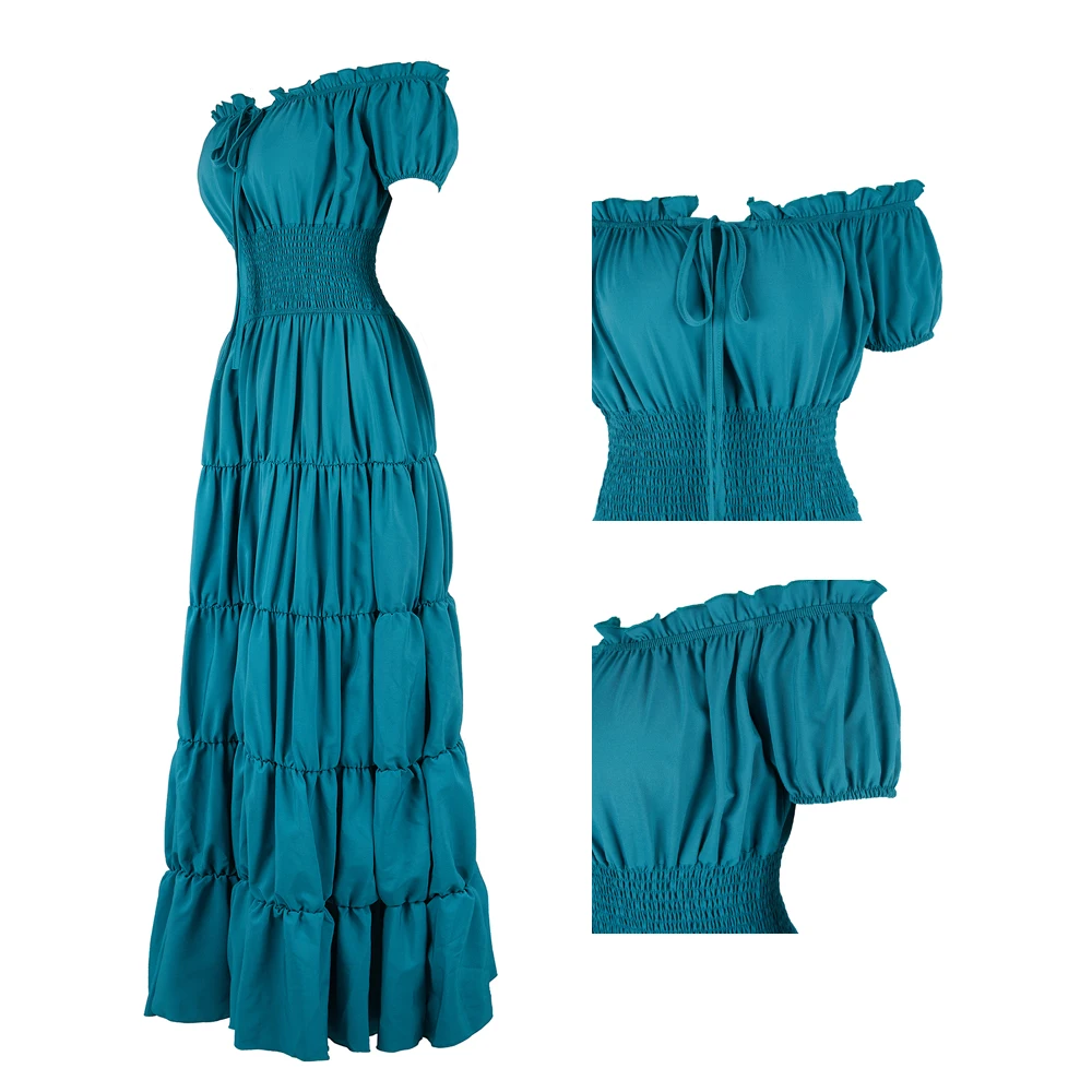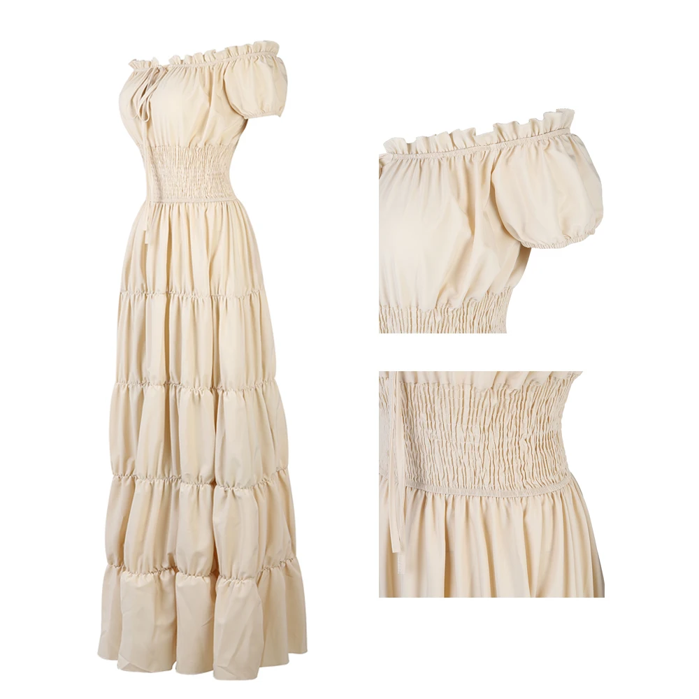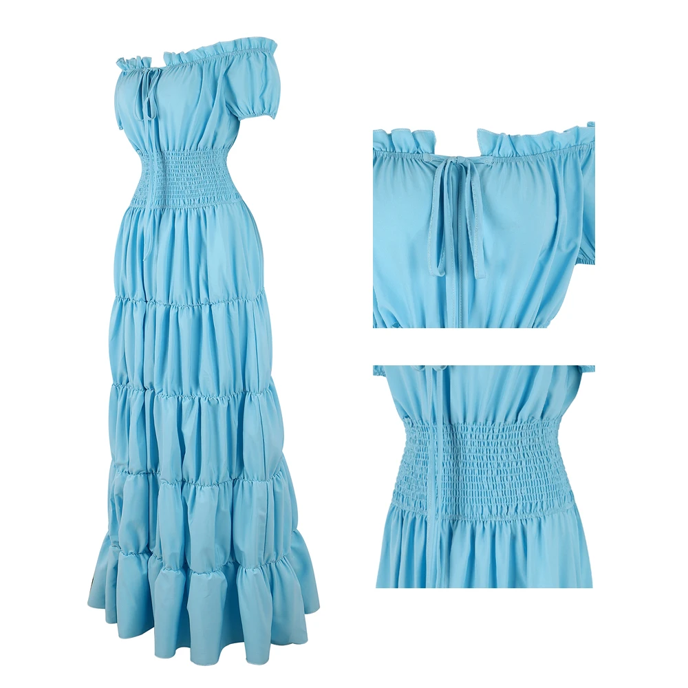 Цвет: белый, черный, куркума, зеленый, темно-зеленый, синий, светло-голубой, темно-синий, морской синий, темно-фиолетовый, серый, абрикосовый, фиолетовый, розовый, Кирпичный Красный Размер: XS, S, M, L, XL, XXL Особенности: эластичный и мягкий вырез, ремешки на плечах и сзади, эластичная лента, высокая талия, плиссированная талия и расклешенные рукава Стиль: Средневековое, ретро, Ирландское платье Случаи: Средневековые свадьбы, нарядные платья для вечеринок, ролевые игры, Хэллоуин, театральные представления, пиратские костюмы, свадебные платья, которые можно сочетать с корсетами и жилетами, а также повседневные наряды для пикника.