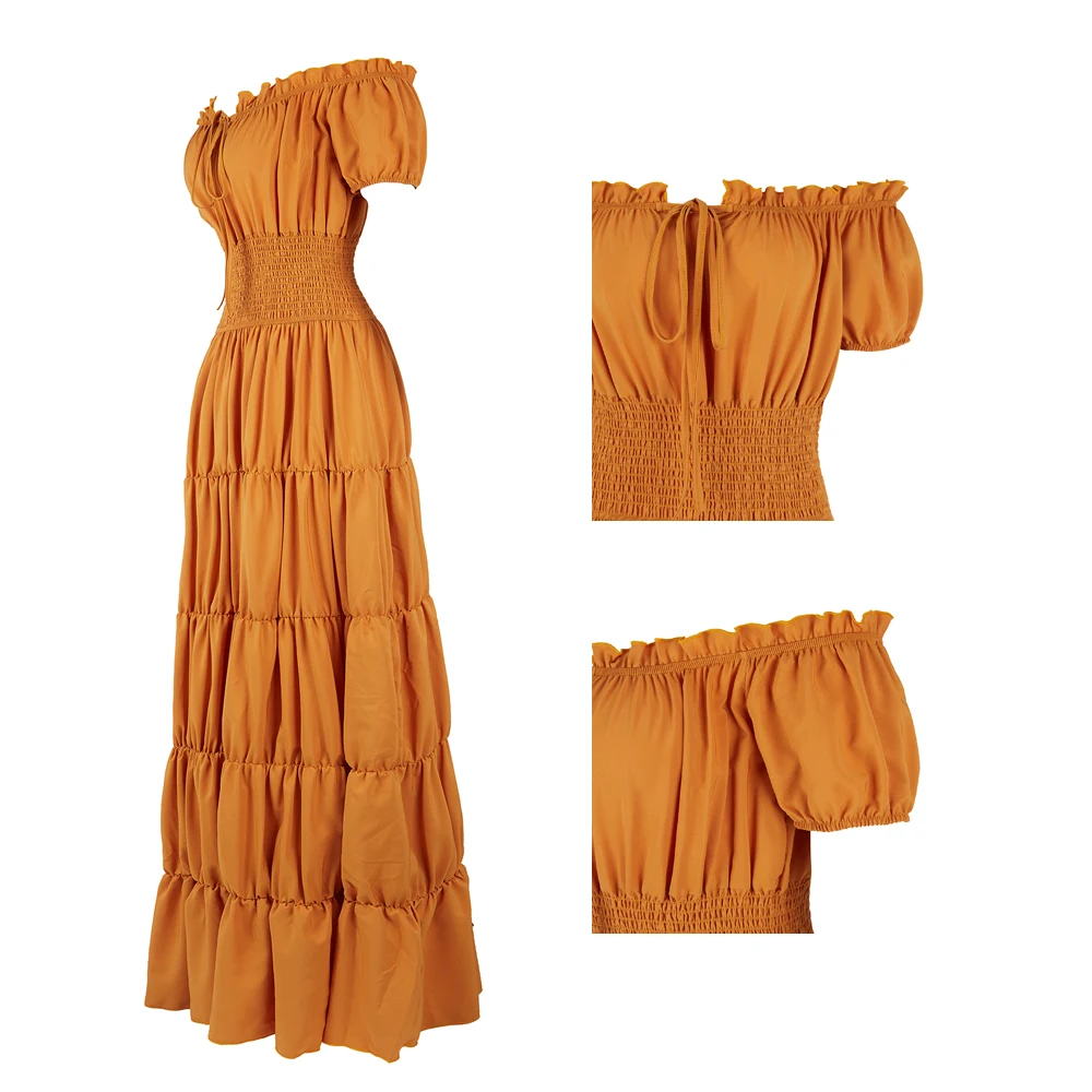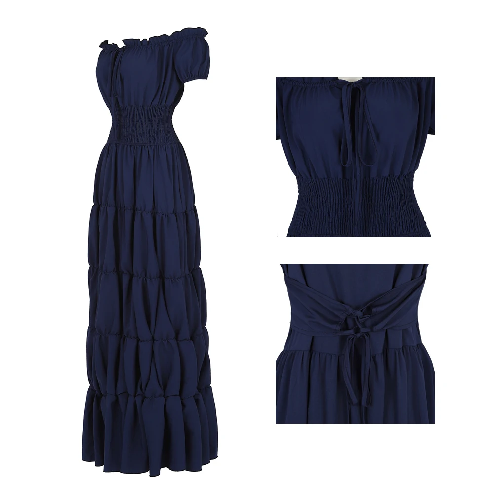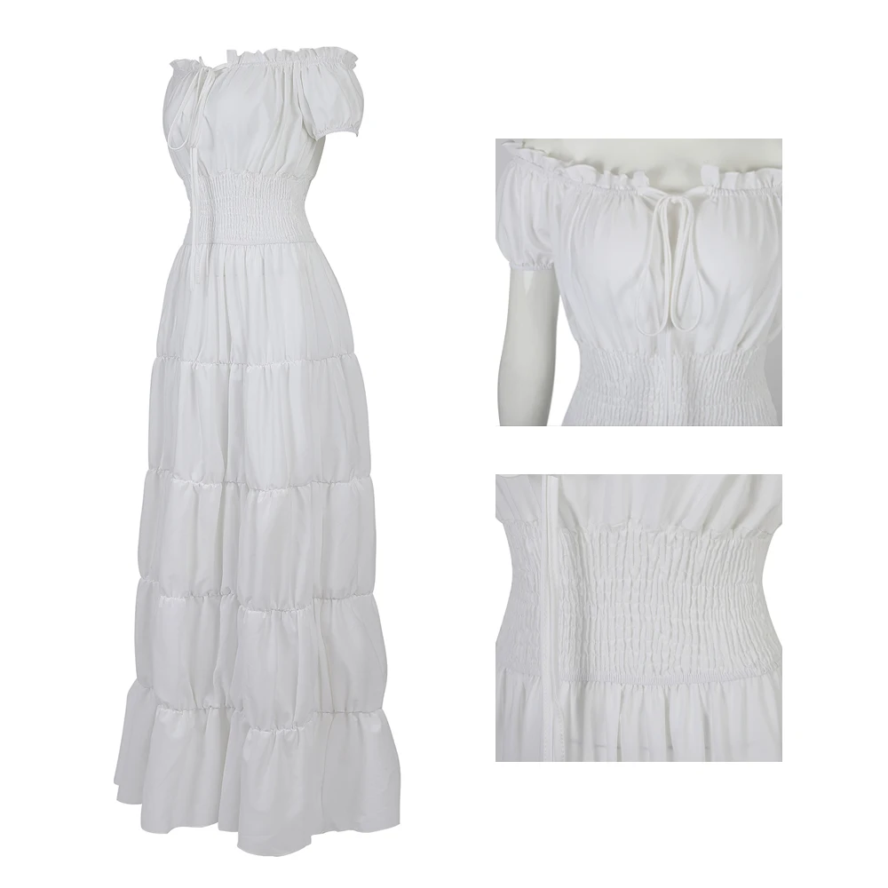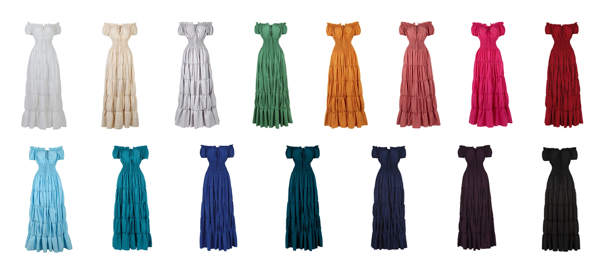 Цвет: белый, черный, куркума, зеленый, темно-зеленый, синий, светло-голубой, темно-синий, морской синий, темно-фиолетовый, серый, абрикосовый, фиолетовый, розовый, Кирпичный Красный Размер: XS, S, M, L, XL, XXL Особенности: эластичный и мягкий вырез, ремешки на плечах и сзади, эластичная лента, высокая талия, плиссированная талия и расклешенные рукава Стиль: Средневековое, ретро, Ирландское платье Случаи: Средневековые свадьбы, нарядные платья для вечеринок, ролевые игры, Хэллоуин, театральные представления, пиратские костюмы, свадебные платья, которые можно сочетать с корсетами и жилетами, а также повседневные наряды для пикника.