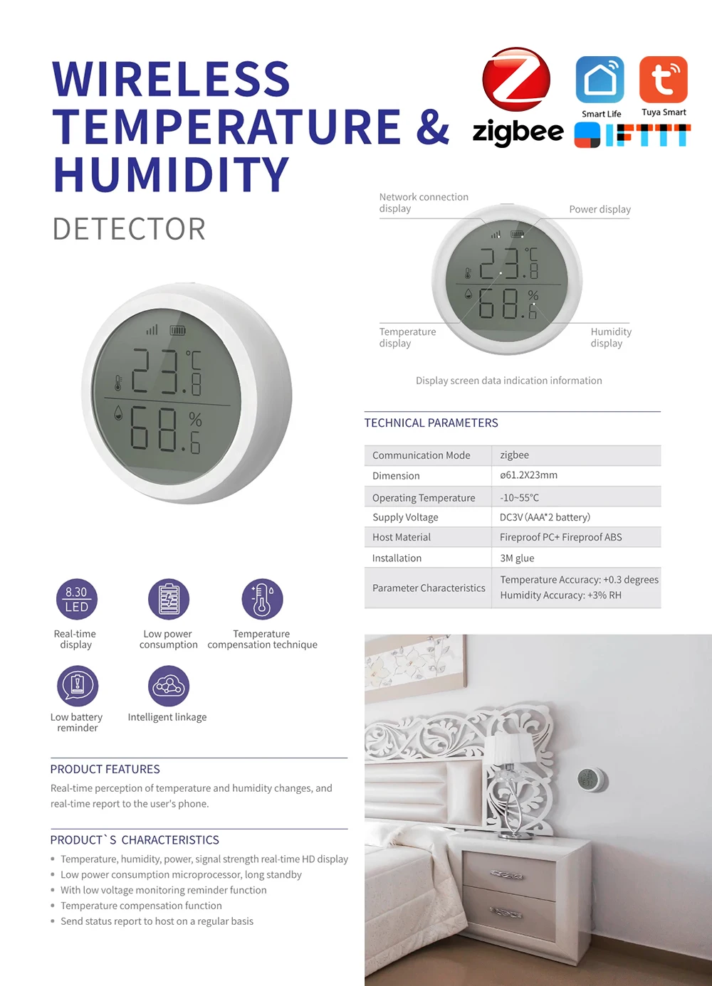 Примечание: умный датчик ZigBee Tuya T & H должен работать с шлюзом Tuya, который поддерживает протокол ZigBee. Он не может работать без интеллектуального шлюза Tuya ZigBee.