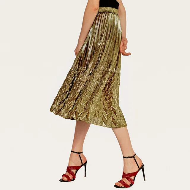 Миди плиссированная юбка Женская Роскошная брендовая Высококачественная подиумная дизайнерская Элегантная модная юбка с высокой талией Женская юбка размера плюс