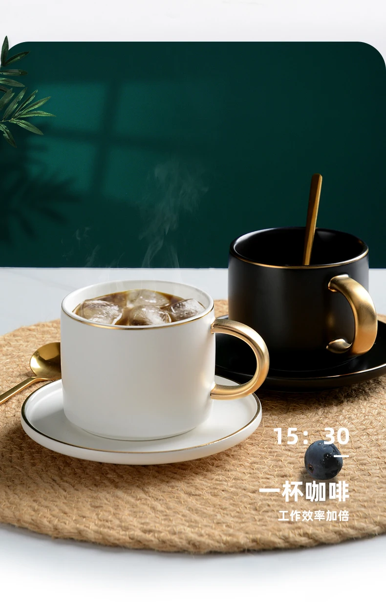 European Luxurious Gold Rim Ceramic Office Coffee Cup And Saucer Set Milk Tea Mugs Birthday Couples Gifts Friends Cup With Spoon