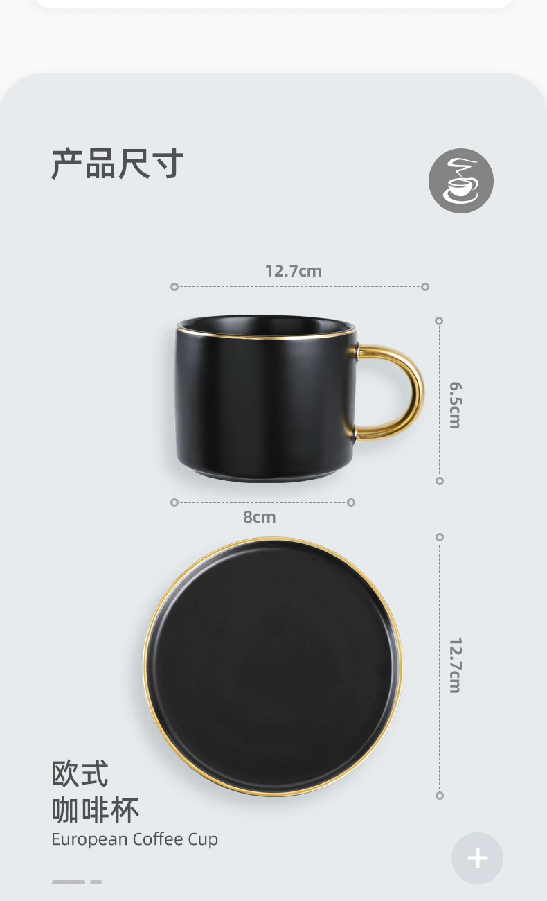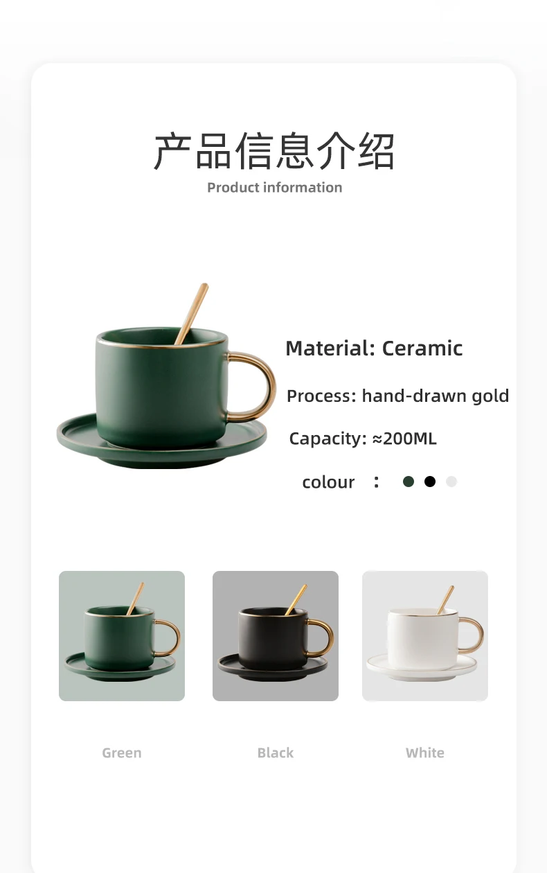 Product Name: Cup and saucer set Material: Ceramic,Porcelain,porcelain Size:See description Weight / Capacity:≈200ML Color:Black / White / Green OEM:More then 500 PCS Acceptable Custom logo Packaging:Logistics packaging Finishing:Glossy Glaze Service:Contact Within 12 hours Pay attention to:Please note, that since each cup is handcrafted and hand painted, there will be small imperfections that make each piece unique and special.