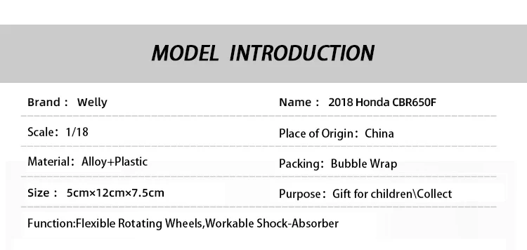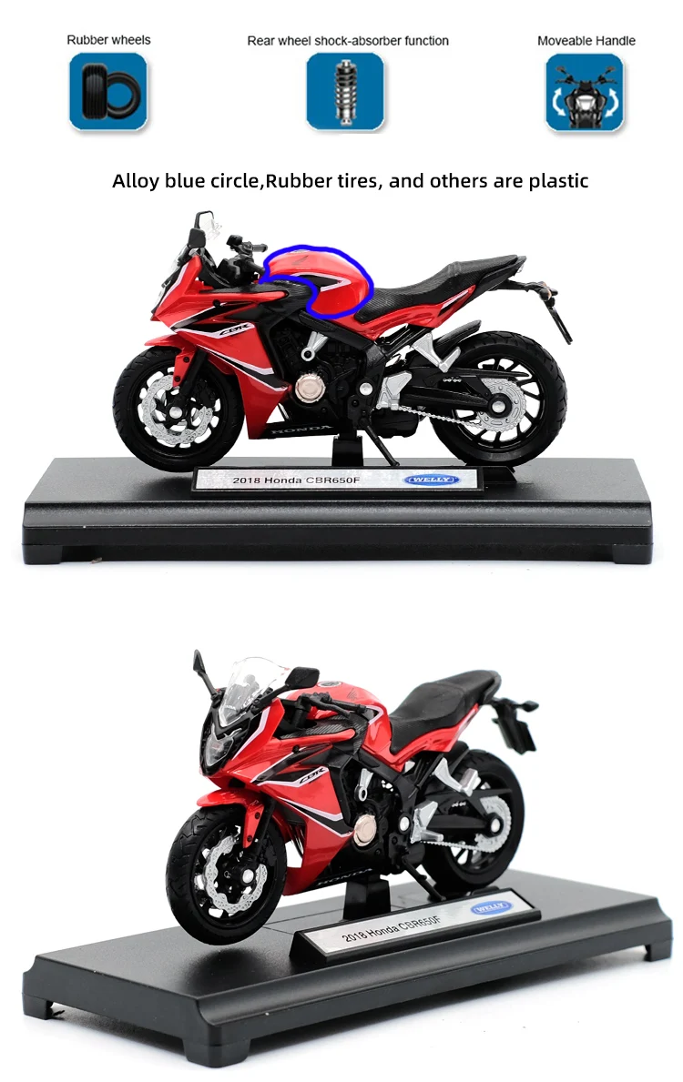Модель мотоцикла Welly 1:18 2018 Honda CBR650F из сплава, уличные спортивные модели, работающая короткопоглощающая игрушка для детей, подарки, коллекция игрушек