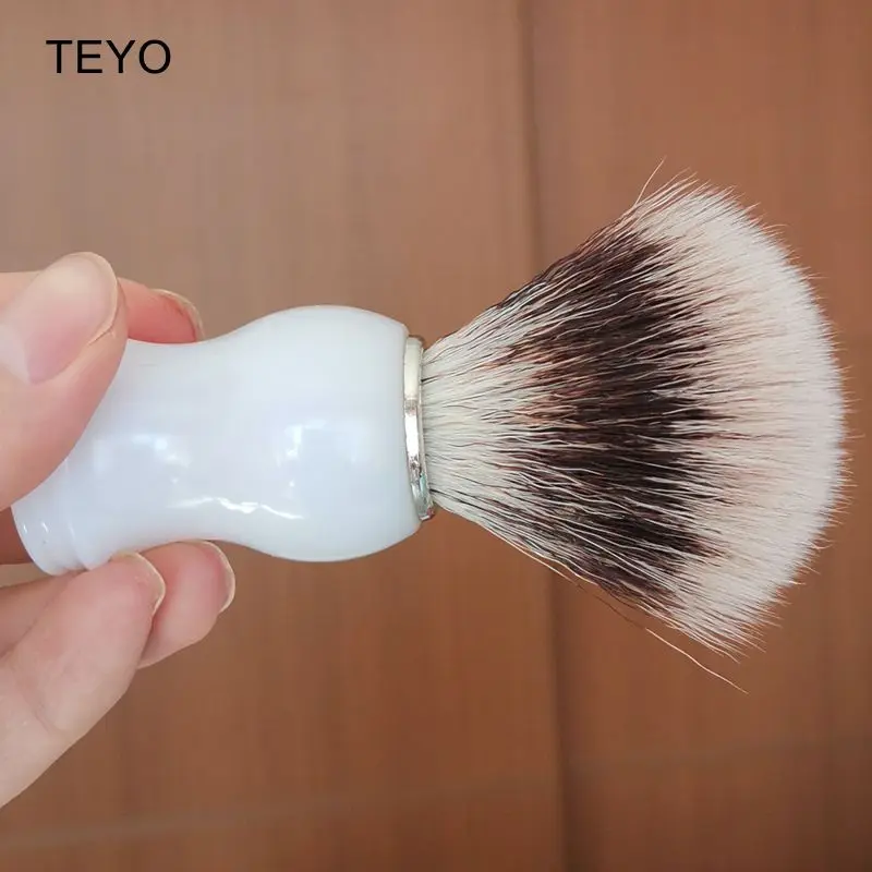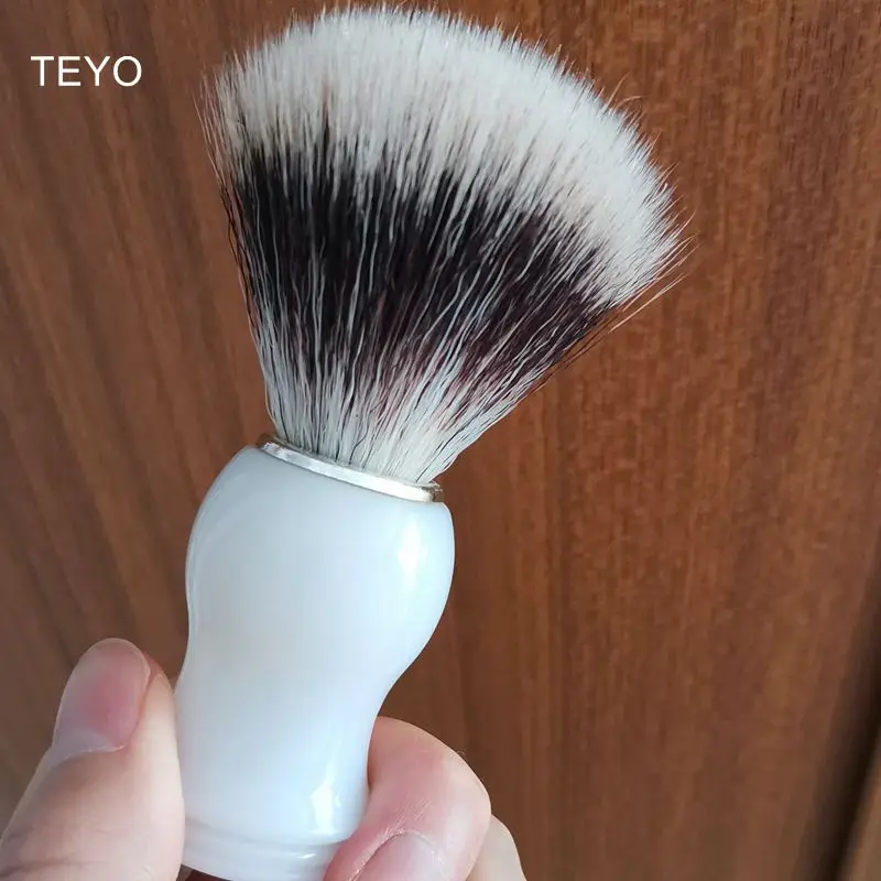 Информация о товаре: • Оригинальная синтетическая щетка для бритья TEYO, изготовленная из верхних синтетических волокон, скрепляющих волосы барсука с серебряным наконечником. • Высокая водонепроницаемость, не подверженная воздействию твердой воды. Эргономичная ручка в форме вазы изготовлена из смолы. Легко держать в руке во влажной среде.