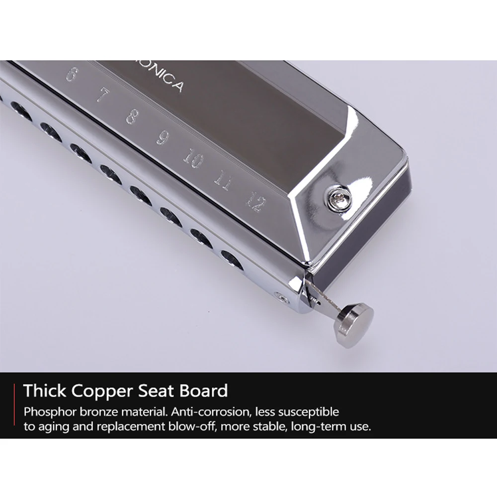 Хроматическая Губная гармошка называется фортепиано губной гармошки. С умной клавишей, она может воспроизводиться, поднимаясь и опускаясь на гармошку, ненажимаемая клавиша воспроизводится как нажатие белых клавиш пианино. При нажатии клавиша сразу поднимается на полтона, что эквивалентно нажатию черных клавиш пианино.