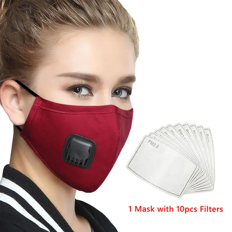 Анти PM2.5 дыхательная маска хлопок дымка клапан Анти-пыль Здоровье полости рта маска с 4 шт фильтр с активированным углем респиратор рот Муфельная маска