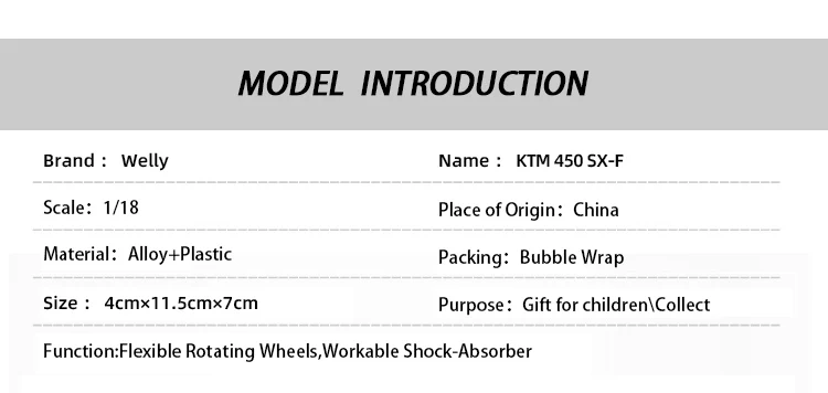 Велли 1:18 KT M 450 SX-F гоночная модель мотоцикла из сплава для пересеченной местности диавель игрушка для велосипеда для детей Подарки для детей для коллекции (Бесплатная доставка в отдельных областях)