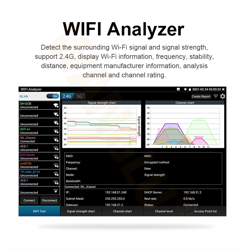 ● Network tool: PING test, IP address scan, port flashing etc
