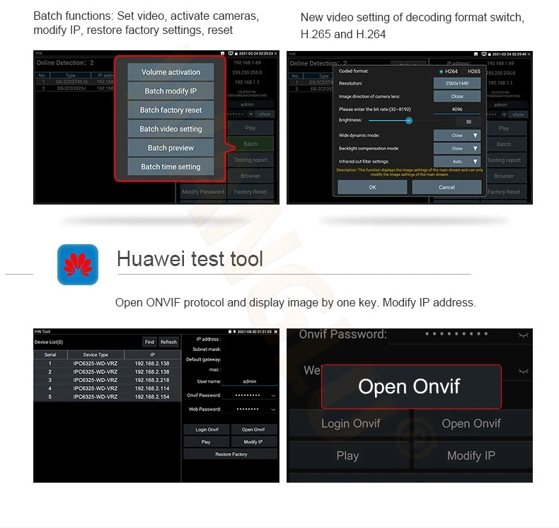 ● Rapid ONVIF, Auto log in and display image, create testing report