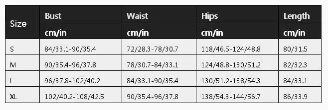 Size Bust Waist Hips Length