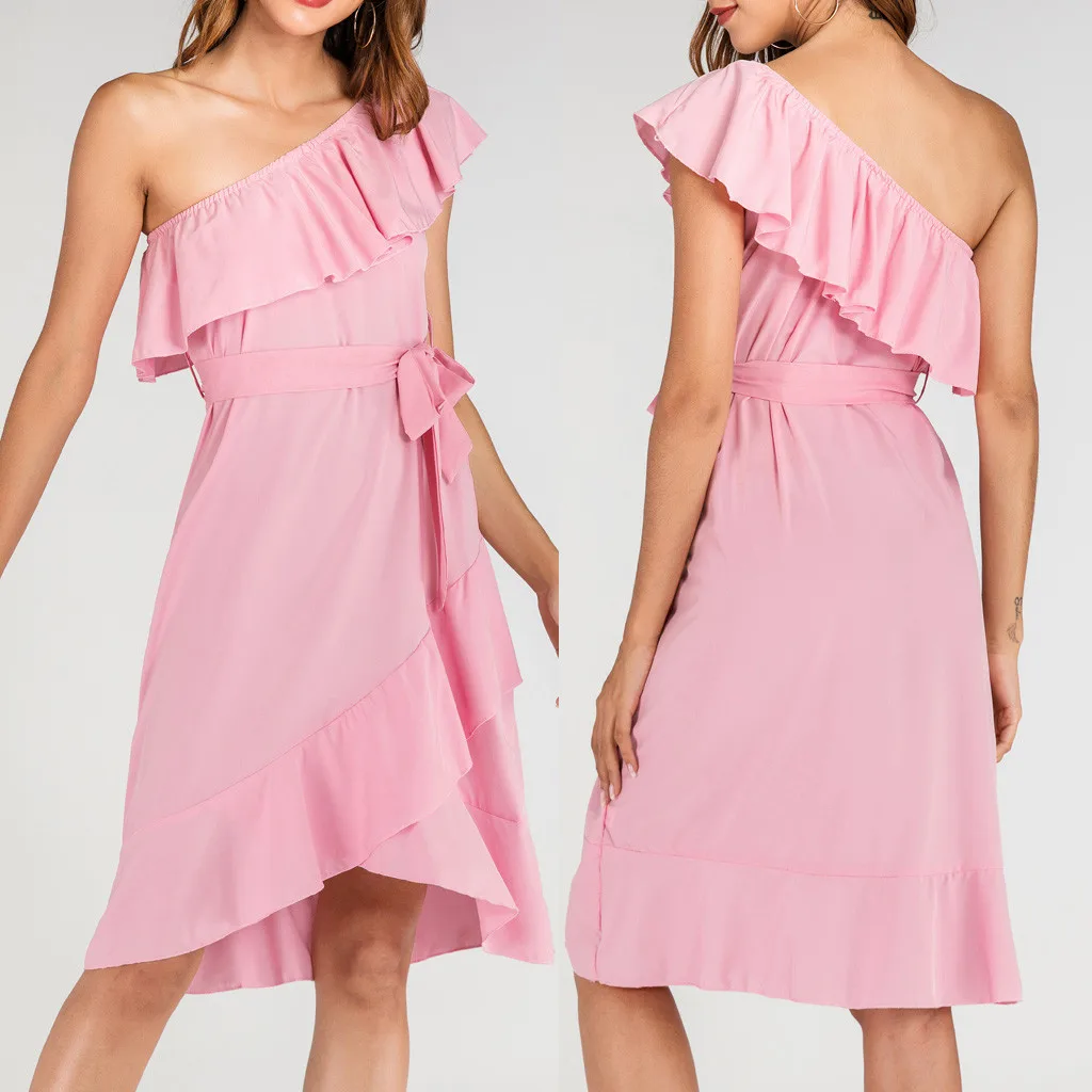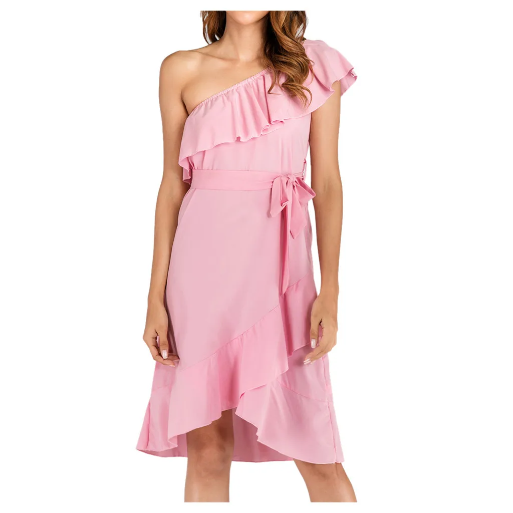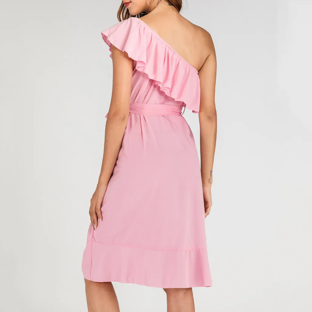 Модное женское однотонное Бандажное платье на одно плечо с оборками, Элегантное повседневное платье