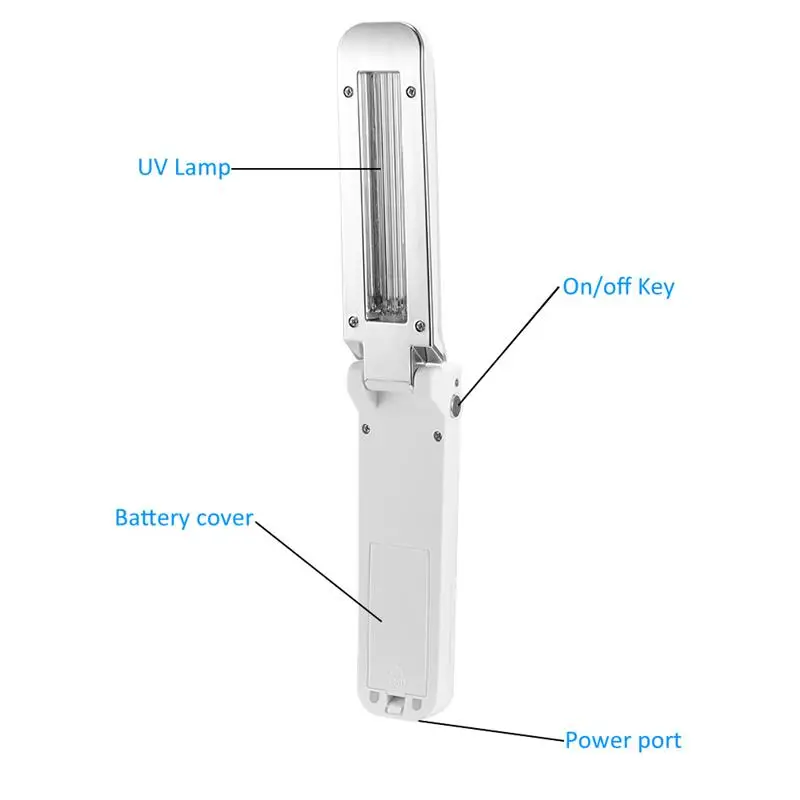 Функция бактериальной очистки Используйте ультрафиолетовый светильник, чтобы удалить бактерии, покрывающие изделия. Поддерживать чистоту в комнате, шкафу и домашних предметах. Избегайте попадания бактерий. Складная конструкция Легкая раскладушка экономит пространство и может использоваться в любое время. Простота в эксплуатации Простое управление, просто нажмите кнопку переключения, чтобы открыть светильник. Автоматический переключатель Со встроенным автоматическим выключателем безопасности, когда лампа трубки бактерицидной палки находится вверх в рабочем состоянии, УФ-лампа автоматически отключается. Чтобы восстановить рабочее состояние, просто Поверните лампу бактерицидной палочки лицом вниз. Два способа питания Он может питаться от подключения USB (не может быть заряжен), а также поддерживает 4 батарейки AAA. Область применения Подходит для дома, офиса, деловой поездки, путешествий, легко носить с собой и использовать.