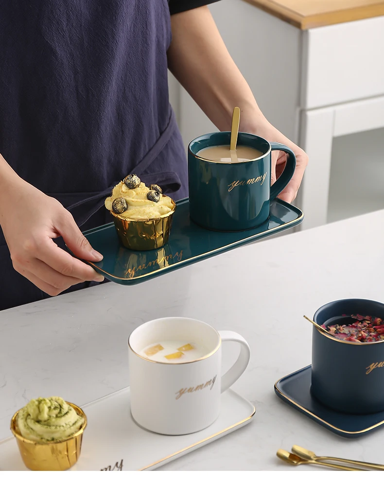 Европейский стиль Керамическая офисная домашняя кофейная чашка с блюдцем Набор для молочного чая завтрак кружка на день рождения пары подарок другу чашка с ложкой