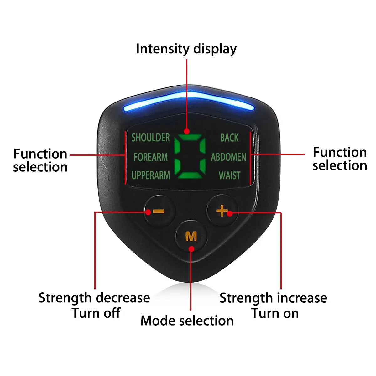 -Литиевая батарея входит в комплект, дизайн USB-зарядки. ЖК-дисплей, чтобы показать различные режимы и уровень интенсивности.