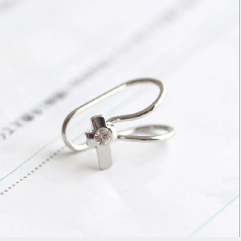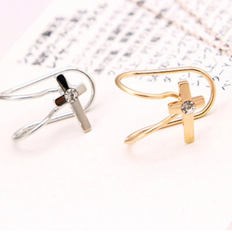 Женские серьги-Клипсы из нержавеющей стали с крестиком в форме буквы C, золотые и серебряные серьги-клипсы без пирсинга, Надеваемые На ушной хрящ Особенности: