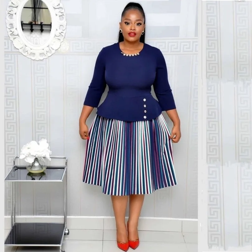 2021 весенне-осенние африканские платья для женщин, элегантное модное платье в горошек в африканском стиле, большие размеры, полиэфирное платье средней длины, одежда в африканском стиле
