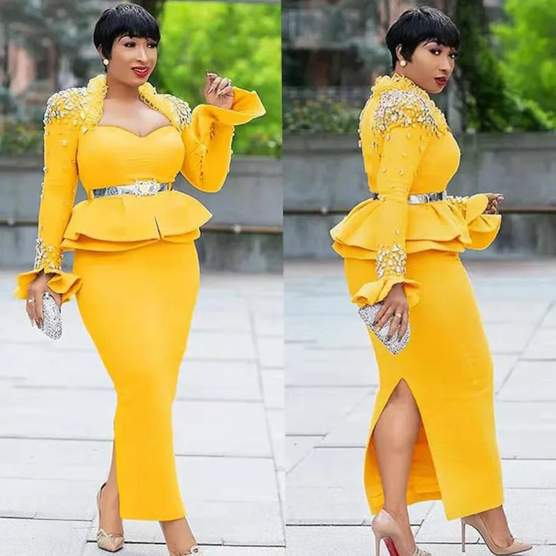 В африканском стиле на высоком каблуке желтые юбки-карандаш платье элегантный перо со стразами облегающее вечерние миди сексуальное платье с открытыми плечами и летние туфли на каблуке, офисные Vestidos