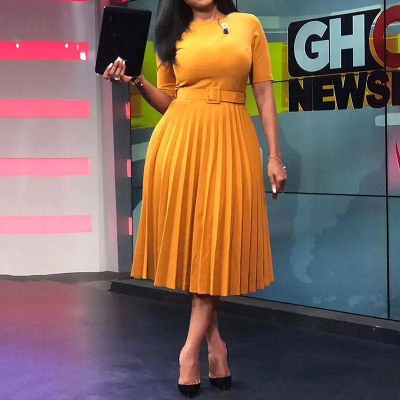 Женское повседневное элегантное плиссированное платье с поясом в африканском стиле, шикарное офисное платье трапециевидной формы с высокой талией, Осень-зима 2019