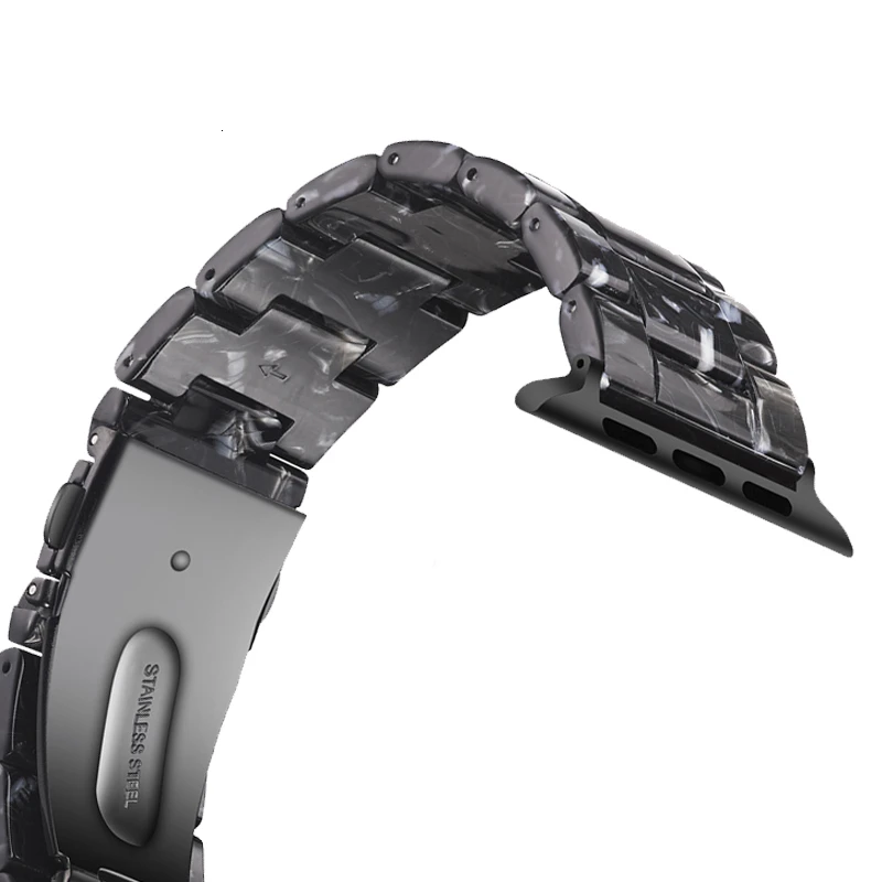 Ручная полировка и превосходные материалы: Каждый кусок смолы медленно полируется опытными искусственниками. В сочетании с премиальной черепаховой смолой и откидной застежкой из нержавеющей стали 316L с двойной кнопкой безопасности, он предлагает новый браслет для ваших Apple watch. Легче, чем металлический ремешок из нержавеющей стали. Исключительная легкость делает его очень удобным в носке, а также благоприятным для кожи.