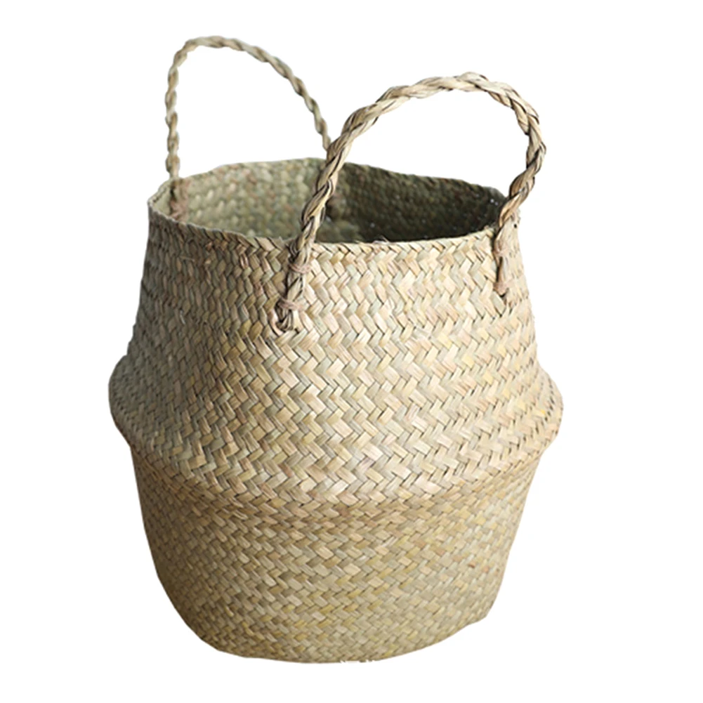 Натуральные водоросли Плетеный горшок для хранения тотализатор живот корзина для хранения Прачечная Пикник растительный горшок крышка и пляжная сумка