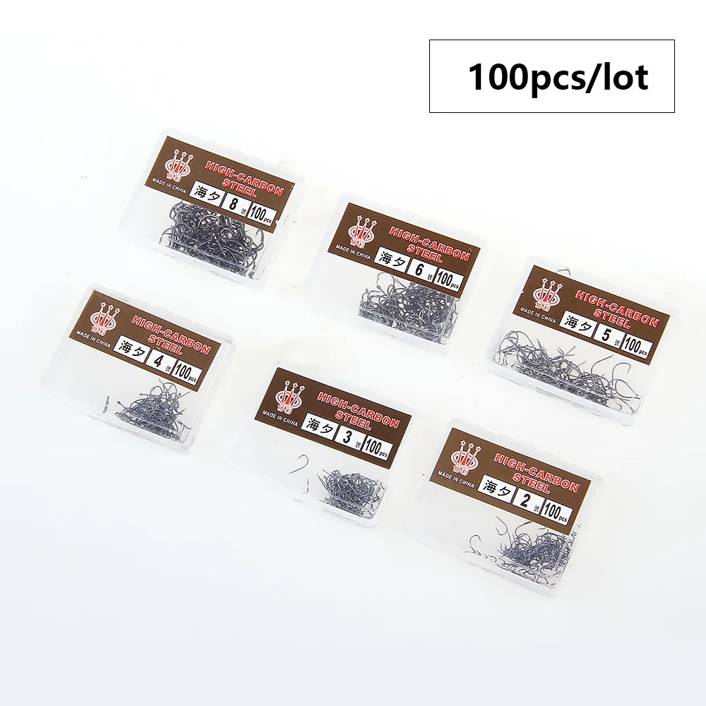 Название: рыболовный крючок Материал: Высокоуглеродистая сталь Размер: 2 #, 3 #, 4 #, 5 #, 6 #, 8 # Цвет, как показано на рисунке Товар: Haixi 100 упаковок Упаковка продукта: изысканная коробка