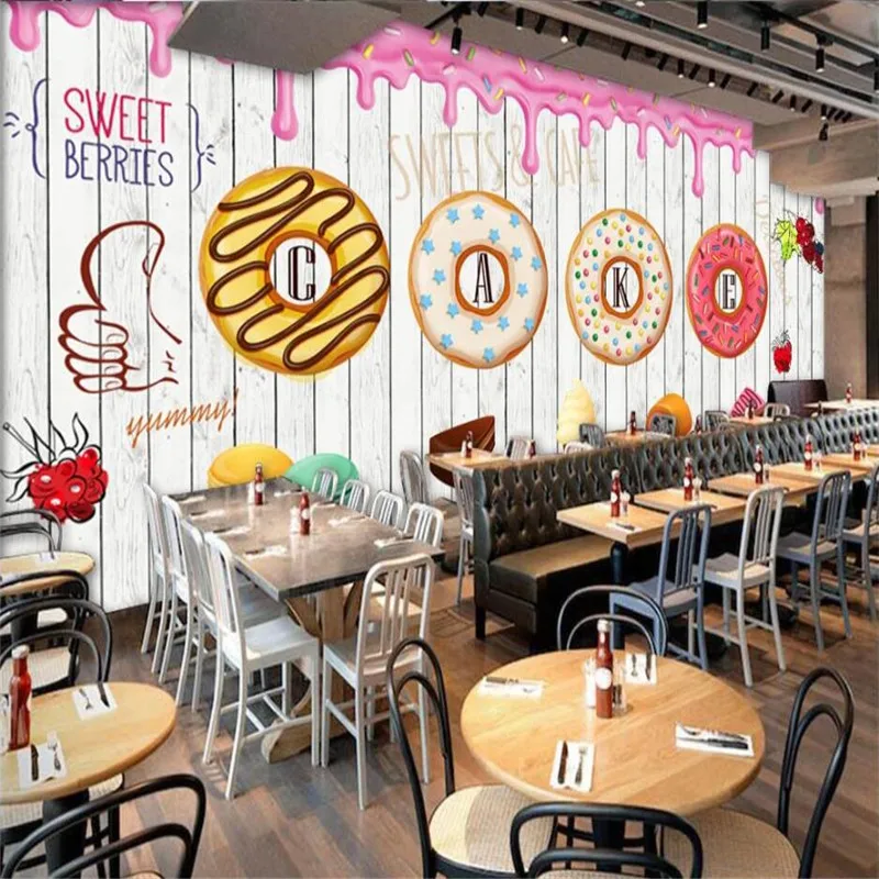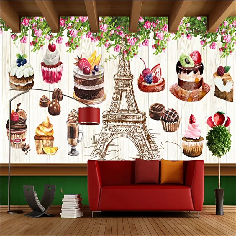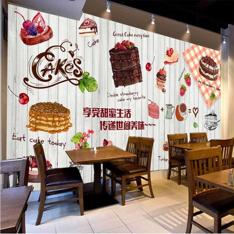 Пользовательские Ретро десерт доска фон настенная бумага 3D выпечки торт магазин промышленный Декор настенная бумага Papel де Parede 3D