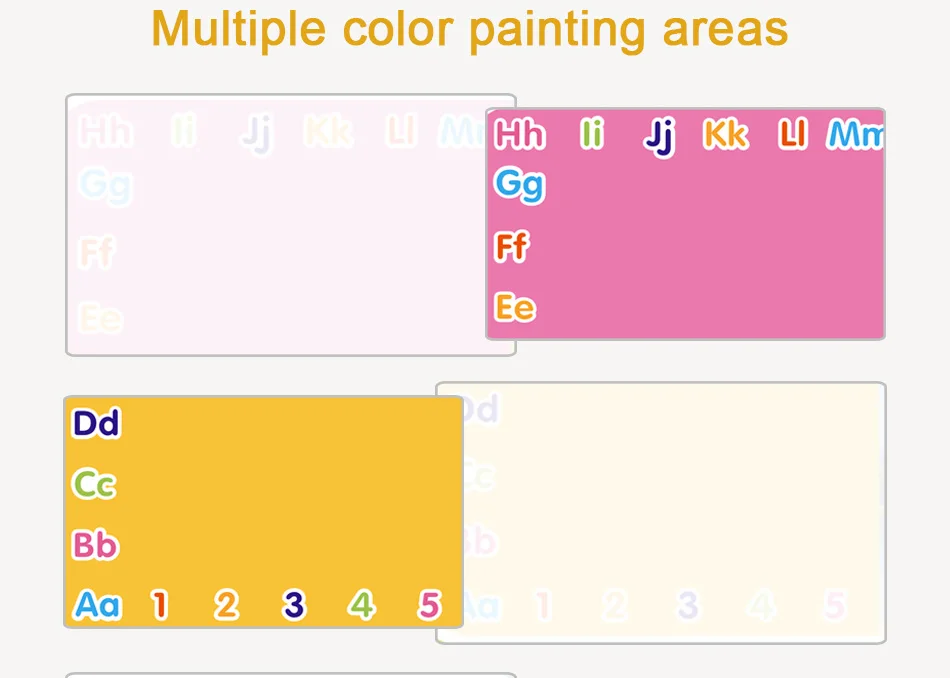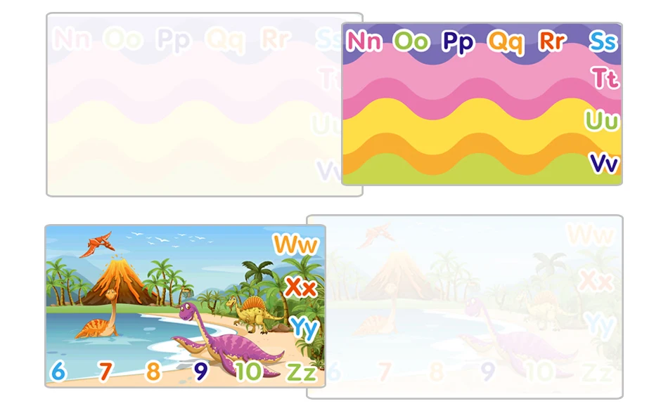 2. Разнообразие функций: развитие детского воображения и творчества, английская область букв, многоцветная область рисования, мультяшный узор, цифровой район, область рисования изображения динозавра