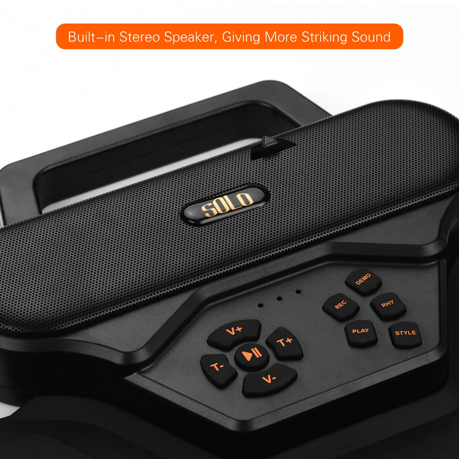 Со встроенным стереодинамиком, дающим ваш более яркий звук и более реалистичный опыт воспроизведения; Также поддержка внешних наушников или громкоговорителей; Поддержка аудиовхода для соединения с мобильным устройством в качестве сопровождения; С встроенным чипом MIDI core Подключайтесь к компьютеру для практики игры с помощью различных барабанных игр.