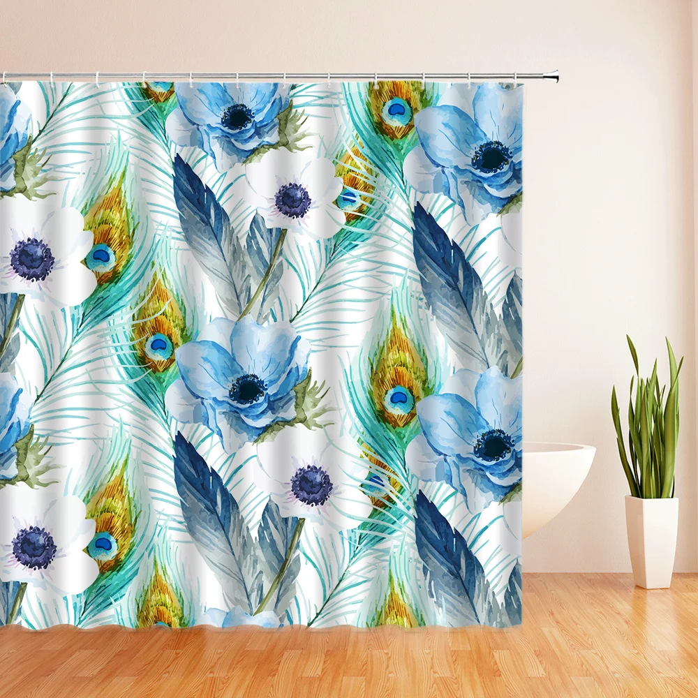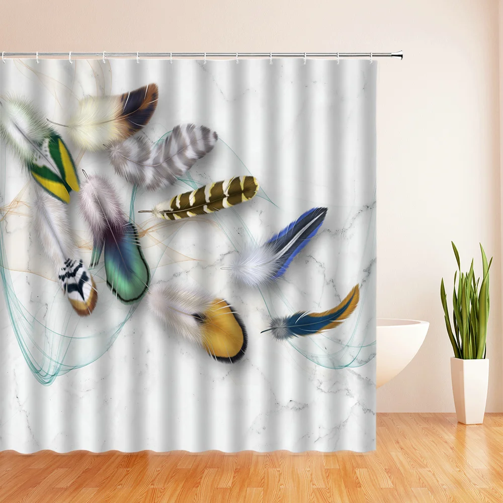 Красочные перо Водонепроницаемый полиэстер ткань занавески для душа набор с 12 крючками 3D печать для ванной занавески домашний декор Ванная Комната Занавески s