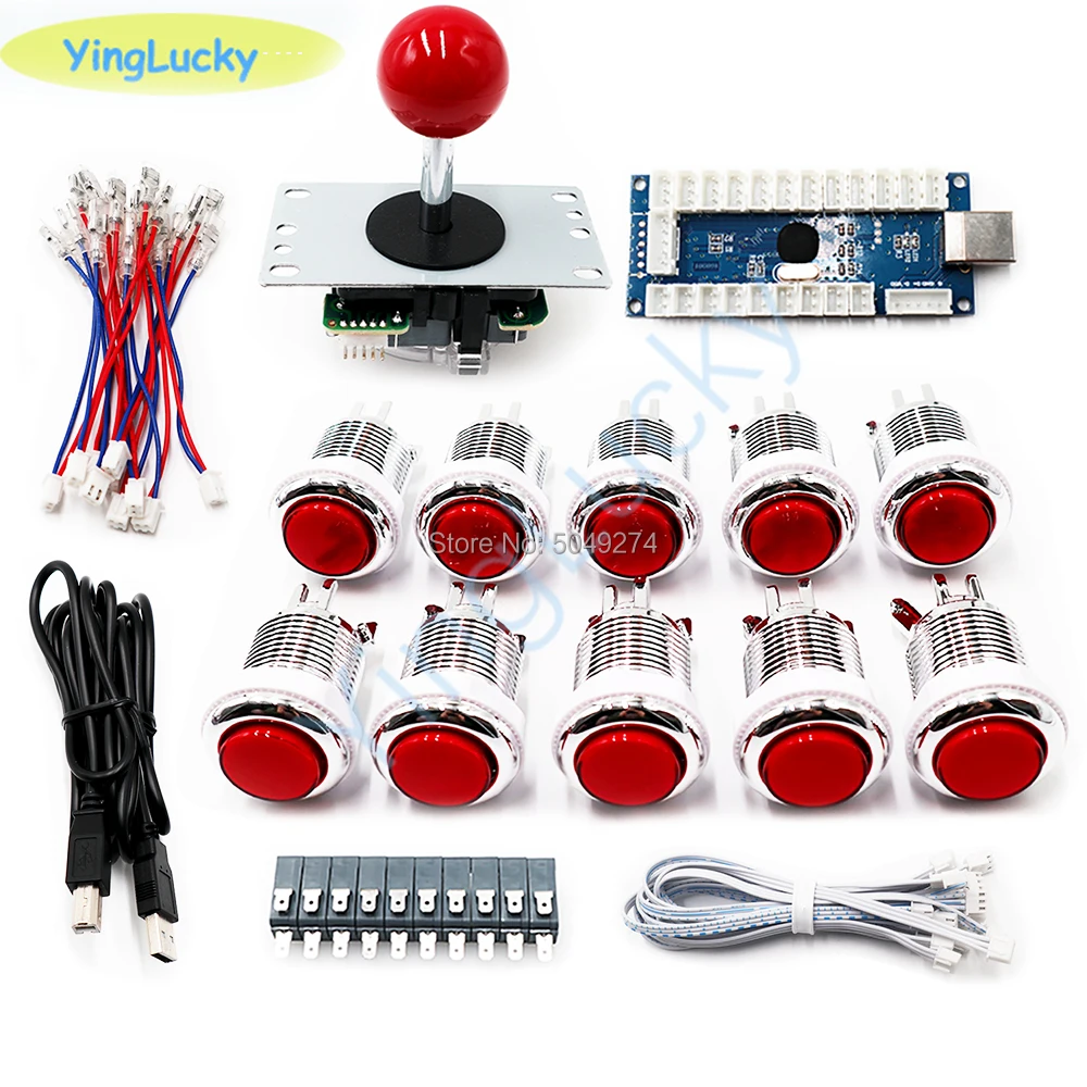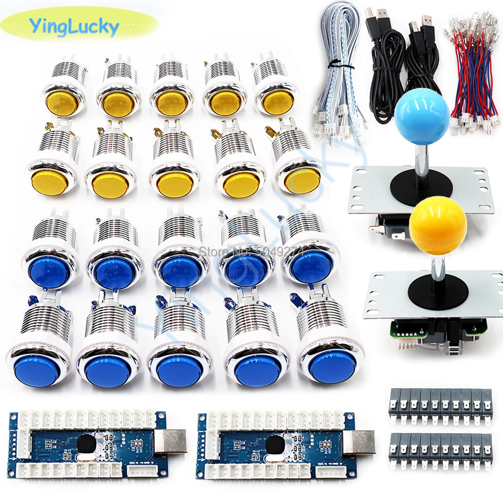 Аркада DIY аркадный джойстик набор с 20 светодиодный аркадные кнопки + 2 джойстика + 2 USB энкодера комплект + кабель набор аркадная игра штук