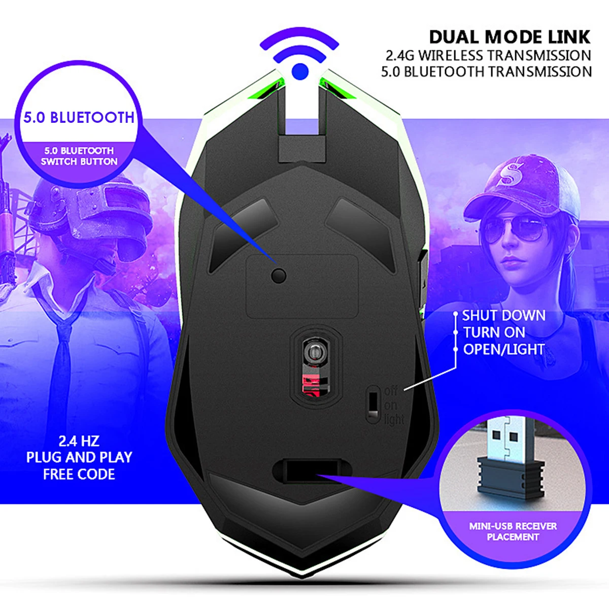 Тип: 2,4 ГГц Беспроводной-черный, 2,4 ГГц Беспроводной-белый, 2,4 ГГц + Bluetooth Беспроводной-черный, 2,4 ГГц + Bluetooth Беспроводной-белый (по желанию)