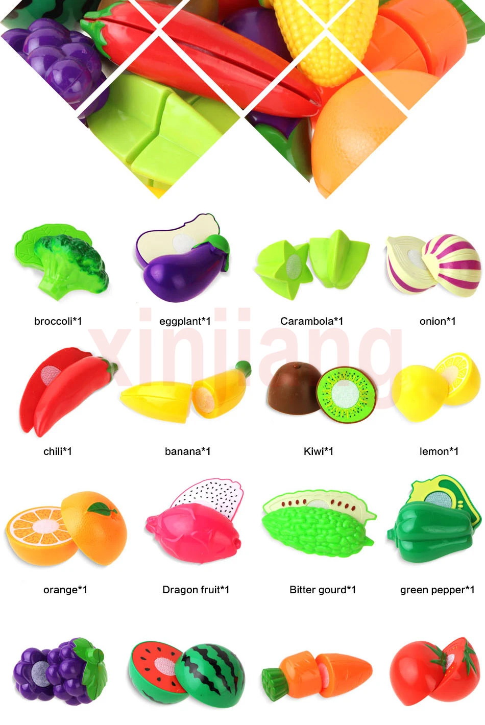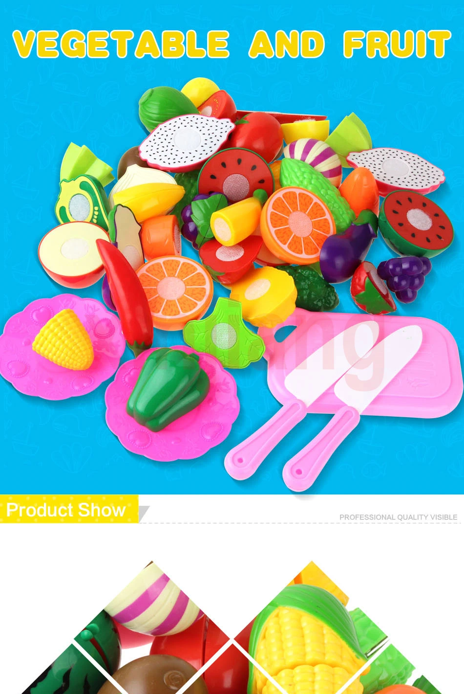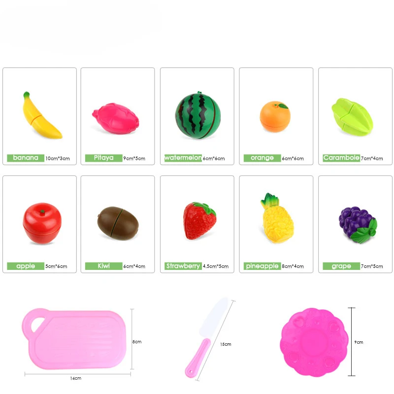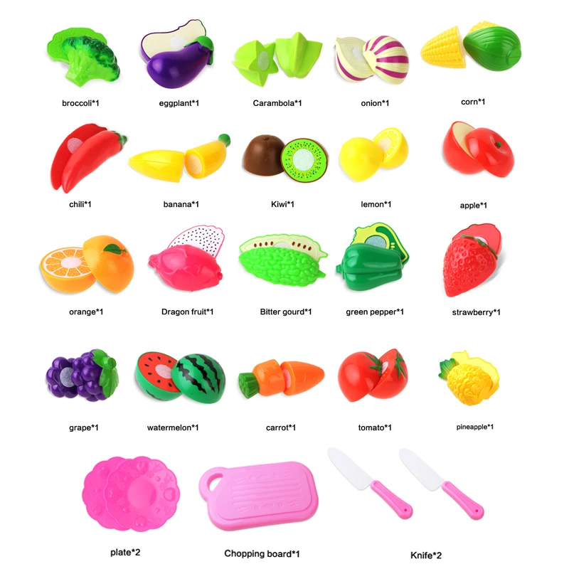 Поставляется с пластиковым ножом, наслаждайтесь резкой игрушечных фруктов и овощей.