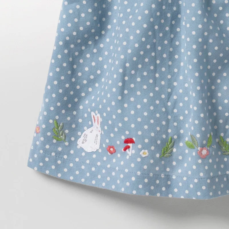 Милое платье с аппликацией кролика для девочек, детская одежда Хлопковое платье для маленьких девочек вечерние с воротником Питер Пэн vestidos