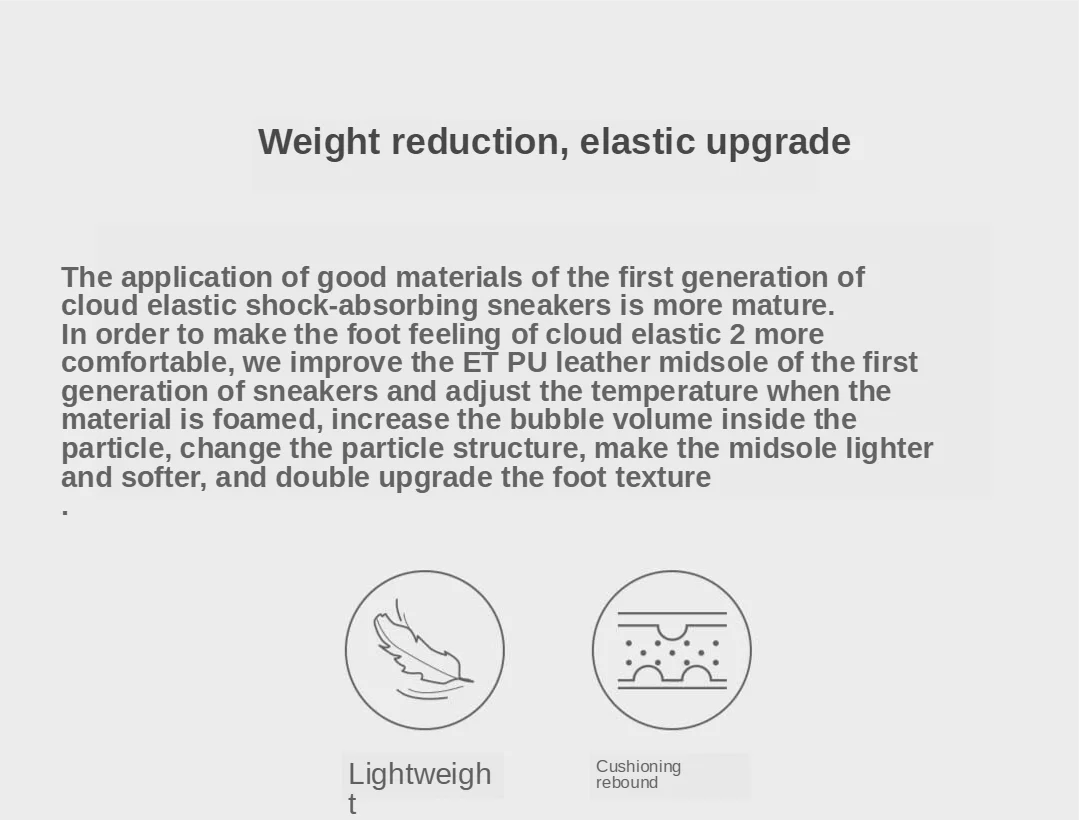 Функция: ETPU cloud bullet midsole, поддержка фиксации рыбьей кости, универсальный контрастный цвет, плетеный верх, каблук из ТПУ