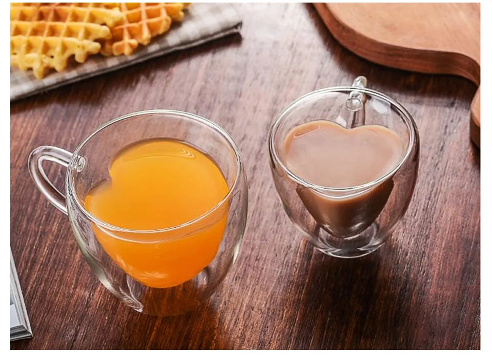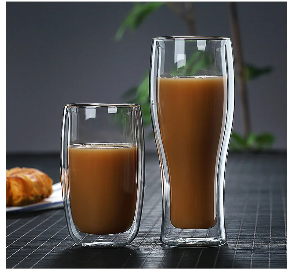 Термостойкая стеклянная чашка с двойными стенками, кофейная кружка, двухслойная многоразовая графин для сока, молока, чая, пива, вина, напитков, латте, десерта