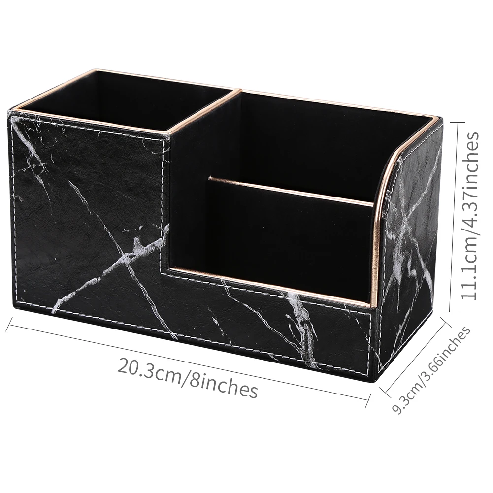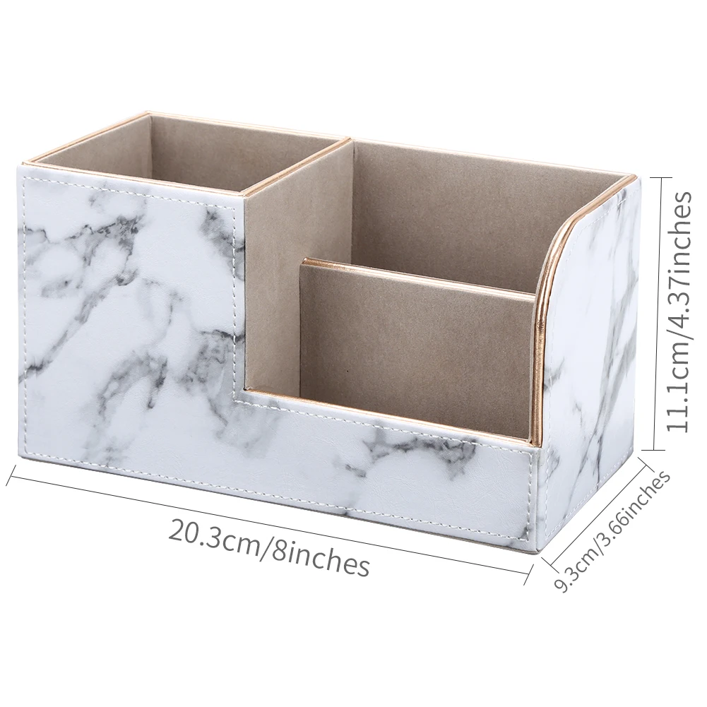 Наименование товара: патент маленький держатель ручки Номер товара: 1969,1970 Вес нетто: 300 г Цвет: черный мрамор, белый мрамор Размеры: 20,3*9,3*11,1 см Материал: из искусственной кожи + деревянная структура + фланель + Золотая оправа Подходит: ручка, карандаш, имя карты, мобильный телефон, пульты дистанционного управления и другие мелкие предметы. Особенности: Модный, элегантный, аккуратный, удобный. Поверхность изготовлена из высококачественной из искусственной кожи, верхняя сторона покрыта золотым ободком из искусственной кожи, внутренняя часть и низ выполнены из мягкой фланели. Функциональный и привлекательный, прочный и прочный. Вы можете положить его на свое рабочее место, тумбочка в спальне. Множество видов идеального цвета на выбор для соответствия вашим требованиям.