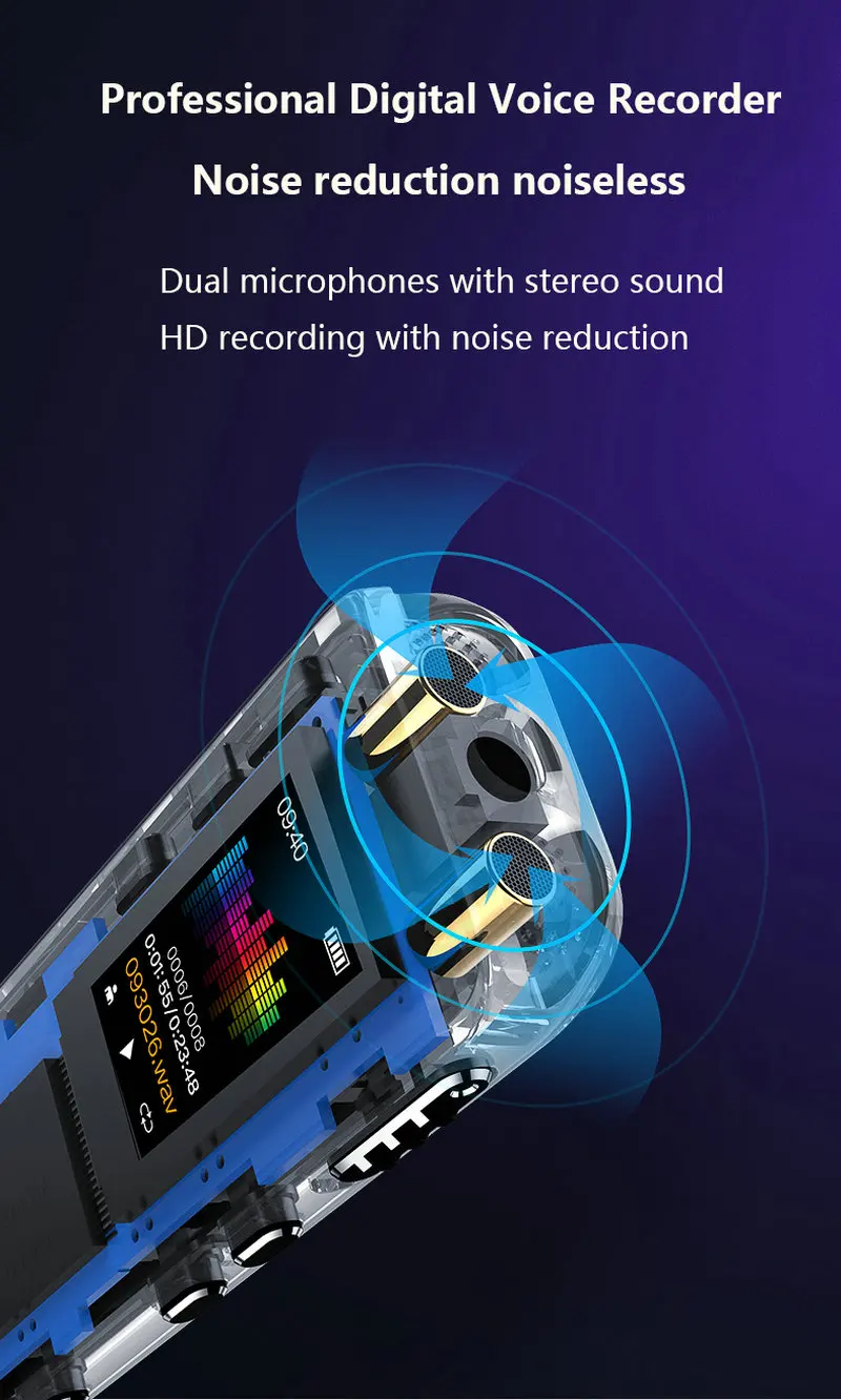 1. Корпус из акрилового материала, устойчивый к падению 2. Профессиональный чип записи ATJ2129, Запись HD 3. Метка времени, автоматическое имя файлов записи по дате 4. Запись таймера и включение в установленное время 5. Функция AGC, автоматически регулирует Источник шума 6. Мониторинг записи в реальном времени/слуховой аппарат 7. Диктофон, MP3 и мобильный HD 8. Функция воспроизведения: Поддержка в режиме циклической записи A-B сегмент функция повтора 9. Встроенный высокоточные колонки, прямая внешняя звуковая 10. Запуск с паролем для защиты файлов 11. Поддержка проверки сохраняющегося времени записи 12. Микрофон для записи, 13. Встроенный высокоточные колонки, прямая внешняя звуковая 14. Без глаз, светодиодный, цветной TFT ЖК-экран 15. Поддержка режима голосовой активации 16. Обнаружение низкого заряда батареи и автоматическое сохранение файлов записи 17. Поддержка мониторинга записи 18. Встроенная перезаряжаемая литиевая батарея 230 мАч 19. Разъем USB 2,0, легко загружать и загружать файлы 20. Цвет: черный