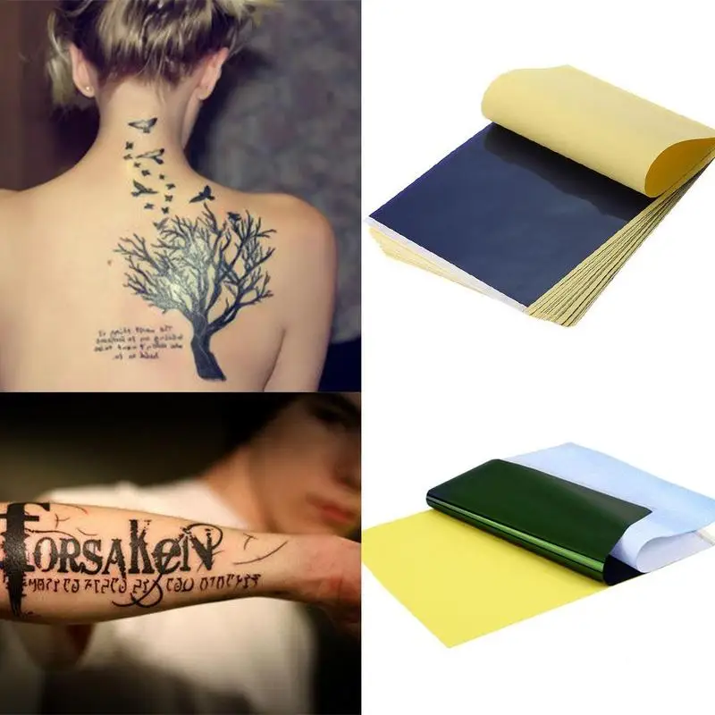Дополнительные сведения: Высококачественная переводная бумага, прозрачный узор, Легко протирается, сохраняет кожу в течение длительного времени, большая карта больше преимуществ, легкая работа с татуировщиком, с переводной пастой лучший эффект. Копировальная бумага состоит из четырех различных составов бумаги формата А4, в дополнение к слою переноса, который другой должен играть защитную роль, переводная бумага имеет две стороны гладкой и есть другая сторона копировального порошка, вам просто нужно иметь шаблон (копировать или распечатать), Поместите боковую часть рисунка, чтобы повторно обрисовать контур снова, затем разместите на нем кожу.