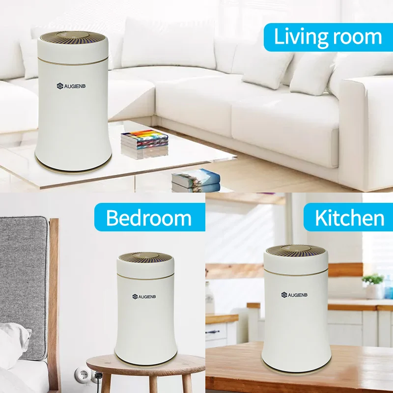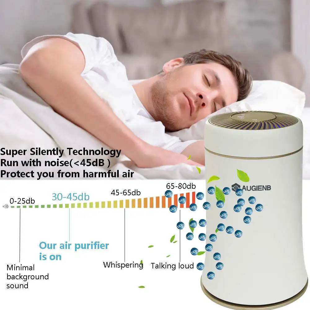 Настольный очиститель воздуха AUGIENB для дома/офиса с настоящим фильтром HEPA, удаление 99.97% очистителя воздуха PM2.5 для аллергии и домашних животных, курильщиков, плесени, пыльцы, тихие очистители запаха для спальни, умный датчик, идеально подходит для 323sq. Фута большая комната, 200м 3/ч Композитный фильтр бесшумный свежий