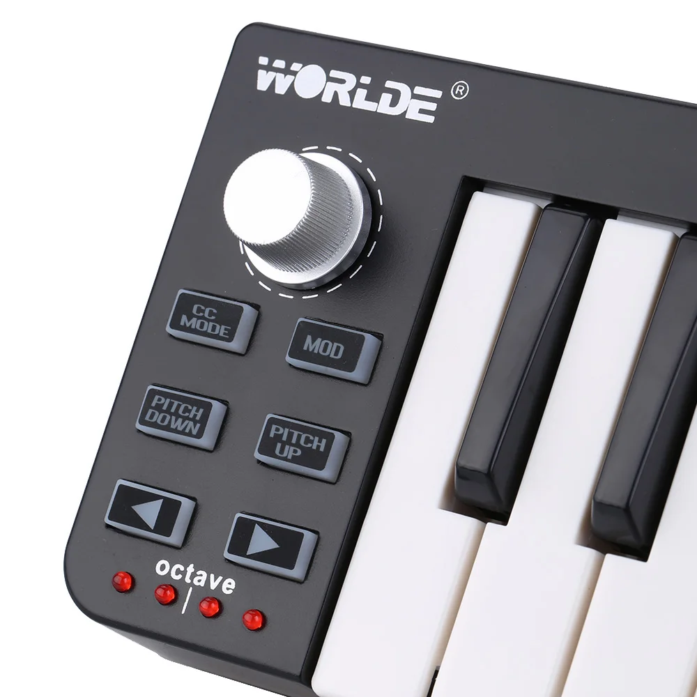 6 кнопок управления: правка, мод, шаг вниз/шаг вверх, Октава вниз/октава вверх.