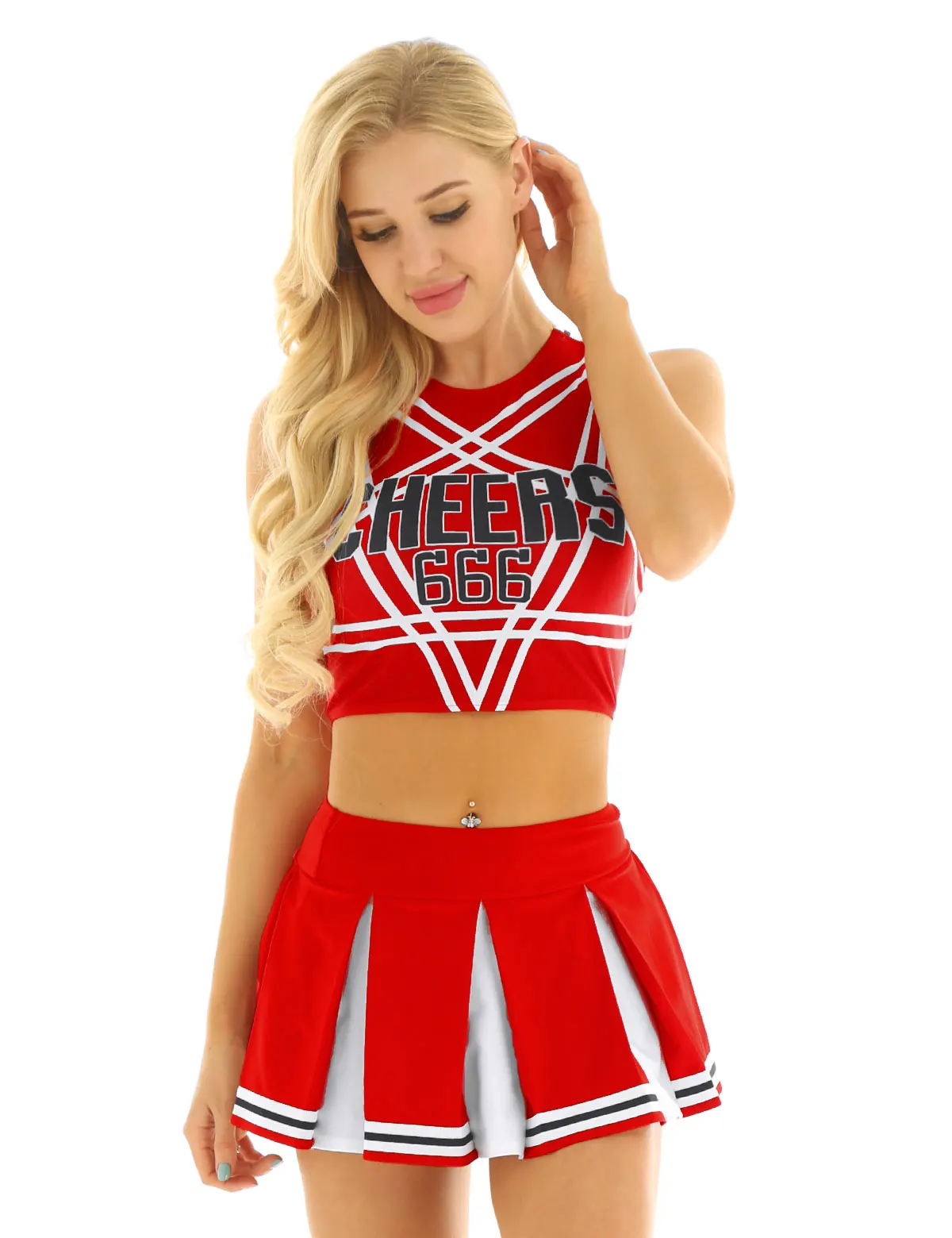 Women ladies cheerleader cosplay costume uniform set, pull on closure.