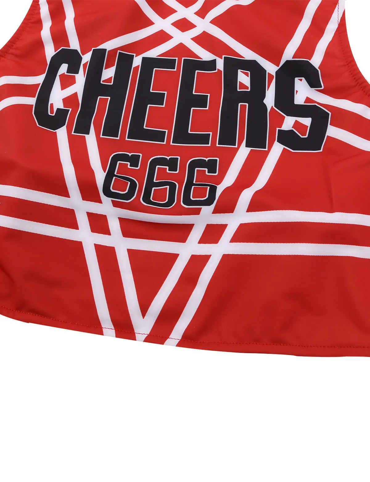 Sleeveless and backless, with elastic straps constructed a pentagram at back, front printed "CHEERS 666" letters.