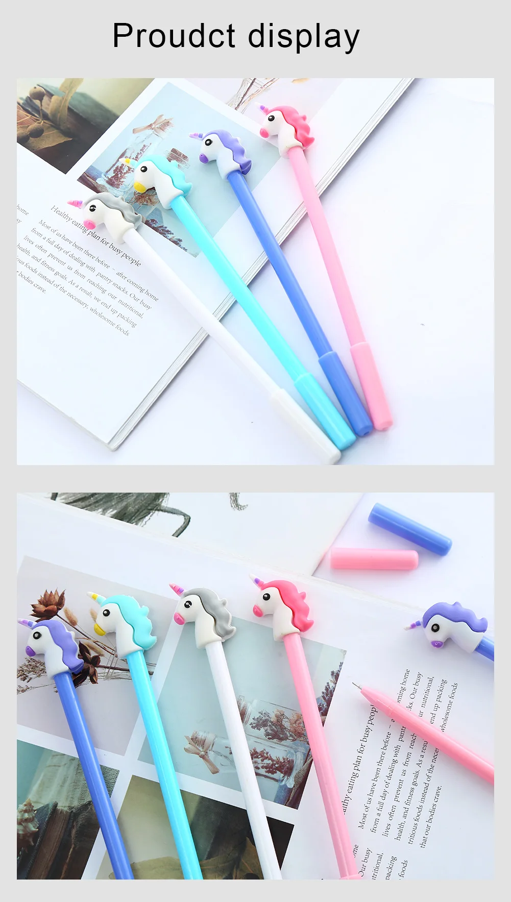 1, стиль: синий, розовый, фиолетовый, серый, единорог, лошадь, рекламная, креативная, кавайная, милое Аниме, талант, гелевая ручка 2. Материал: пластик, резиновые ручки 3, Параметры: Вес: 11,63g Длина: 18,5 см чернил: черный или синий для вас, чтобы сделать правильный выбор. 4. Особенности: ручка для ежедневного использования для взрослых, учеников и медсестер 5, Функция: отделение для деловых подписей инструмент школьная студенческий экзамен стационарный 6, Таможня: Да, логотип is_Customized с MOQ, принимает PS(Photoshop), AI(Adobe Illustrator), CD(CorelDraw) Формат