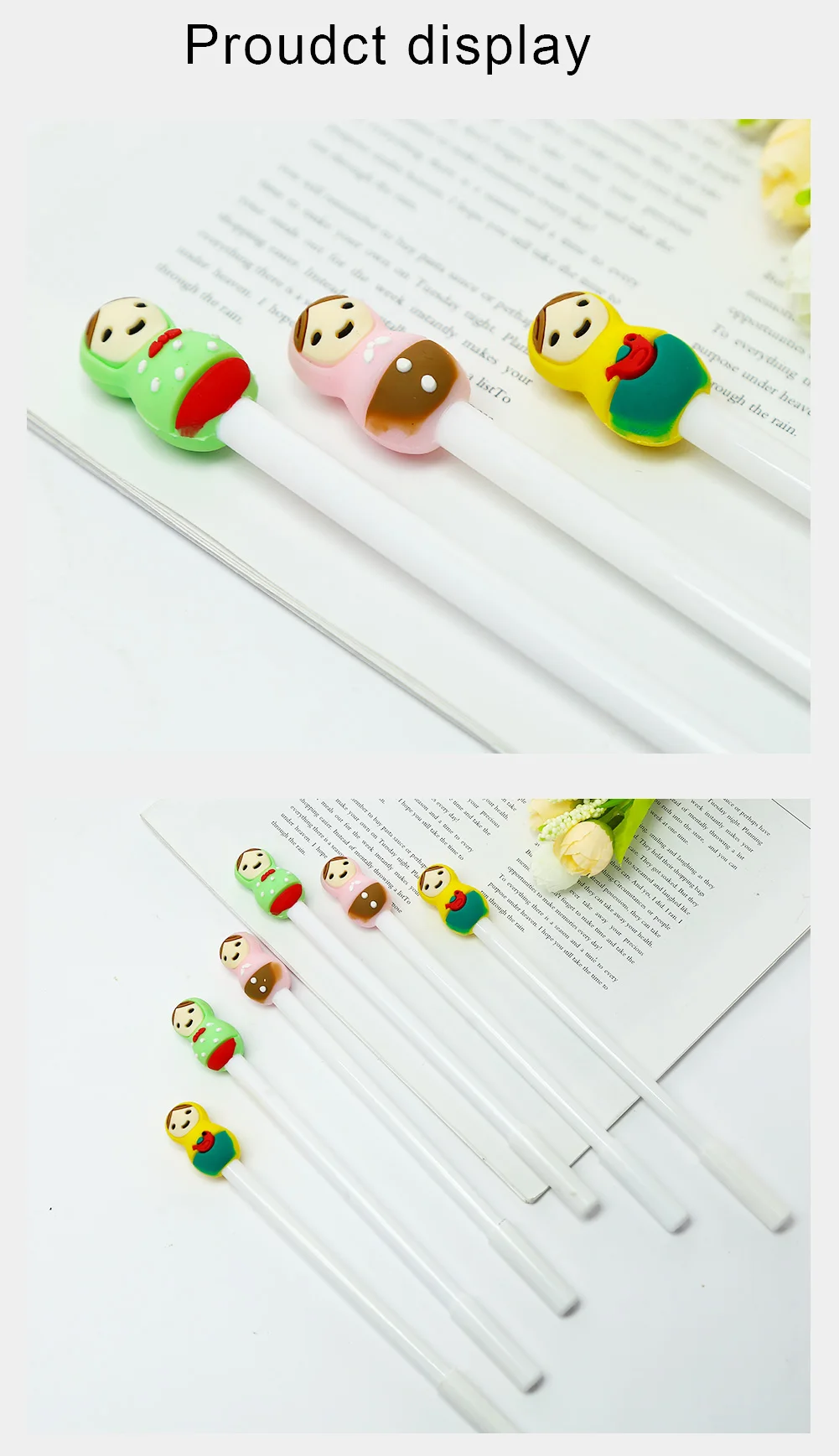 1, стиль: русская кукла милая рекламная креативная кавайная Милая гелевая ручка 2. Материал: пластик, резиновые ручки 3, Параметры: Вес: 11,8g Длина: 18 см чернил: черный или синий для вас, чтобы сделать правильный выбор. 4. Особенности: ручка для ежедневного использования для взрослых, учеников и медсестер 5, Функция: отделение для деловых подписей инструмент школьная студенческий экзамен стационарный 6, Таможня: Да, логотип is_Customized с MOQ, принимает PS(Photoshop), AI(Adobe Illustrator), CD(CorelDraw) Формат