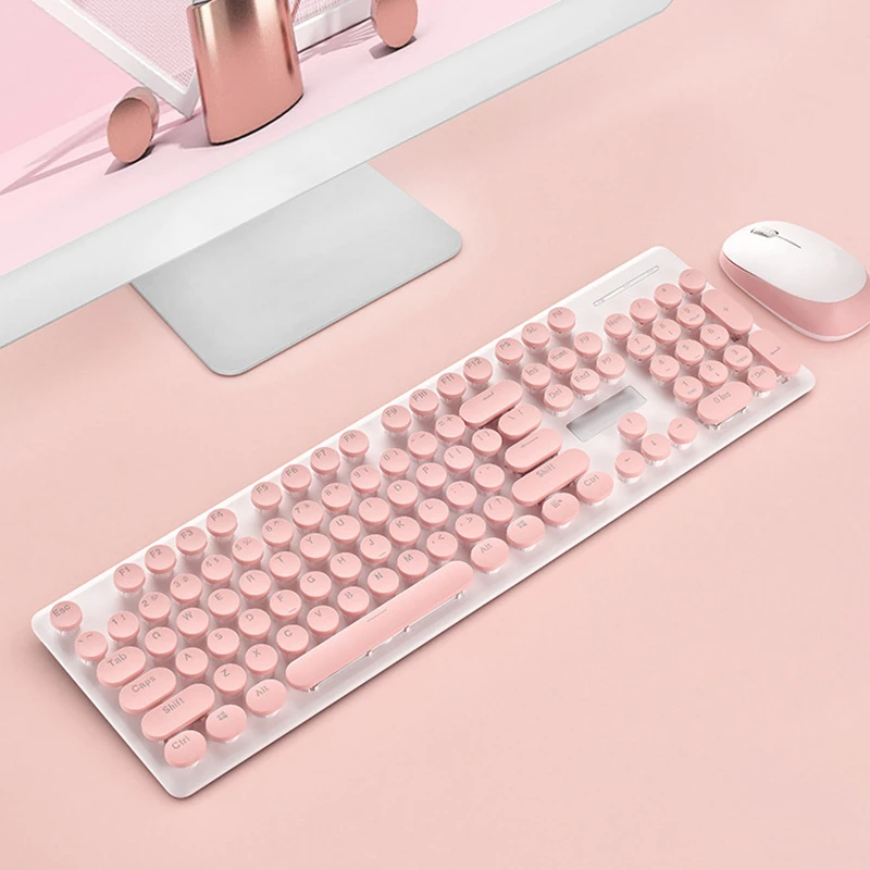 Тонкая Беспроводная игровая клавиатура 2,4G, набор мыши в стиле ретро, панк, розовая игровая клавиатура, контроллер мыши для Overwatch, комплект геймера