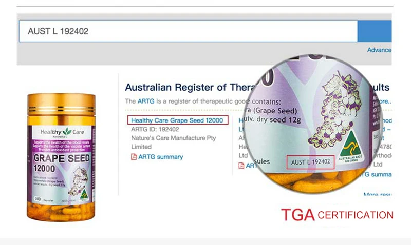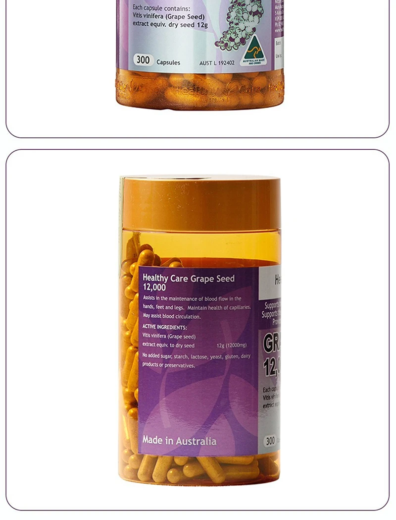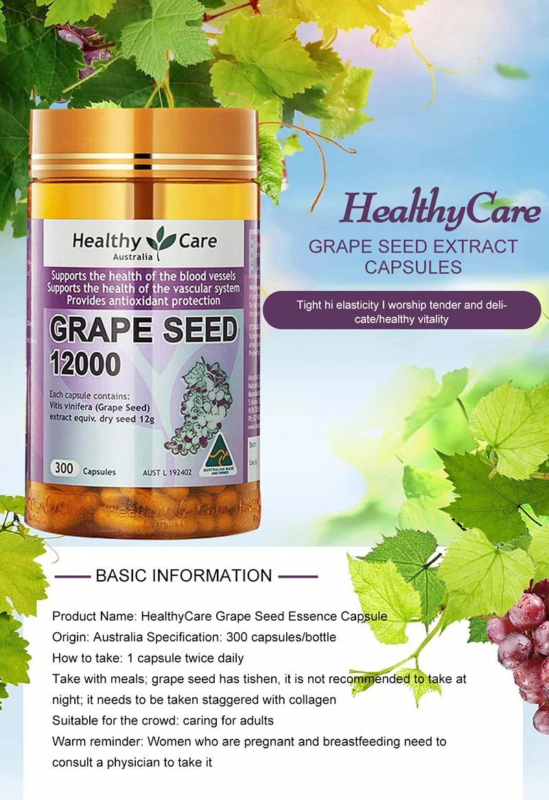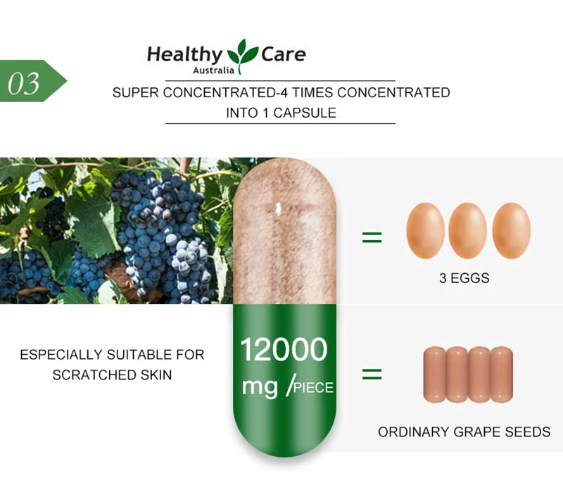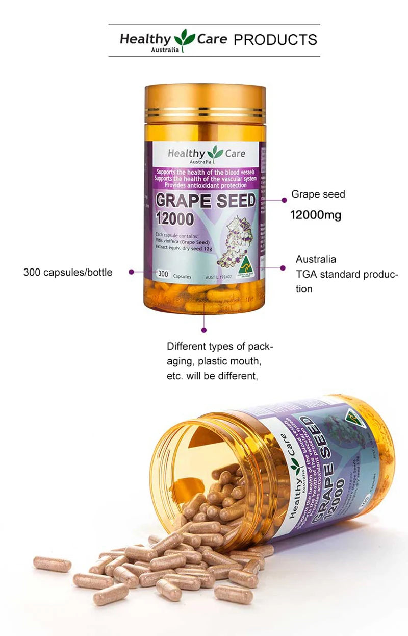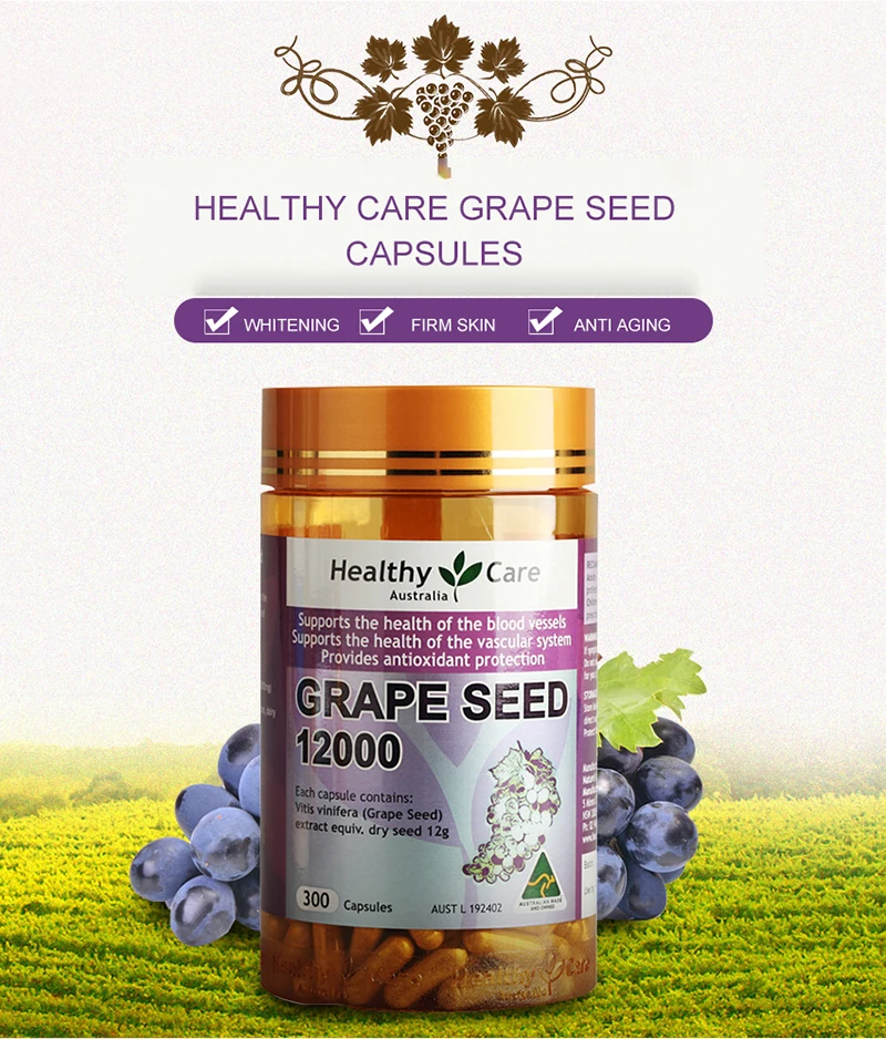 Здоровый Уход виноградных косточек 12000 мг 300 шапок