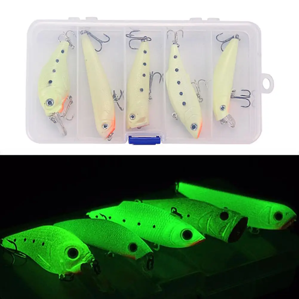 5 шт. 3D люминесцентная приманка имитация светящаяся приманка набор рыболовных приманок Ночная светящаяся рыболовная приманка набор с коробкой для снастей