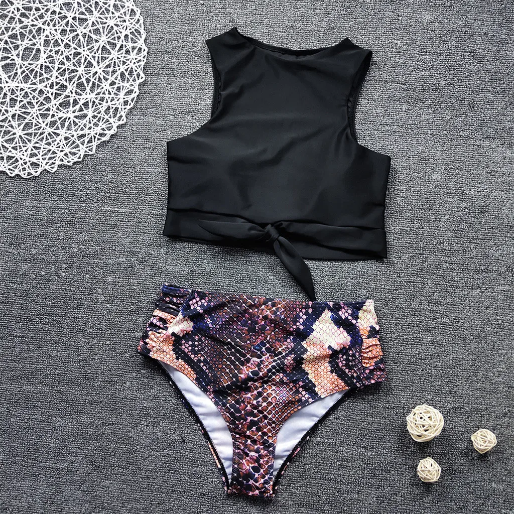 Женский купальник-бикини с высокой талией, пуш-ап, купальник с леопардовым принтом